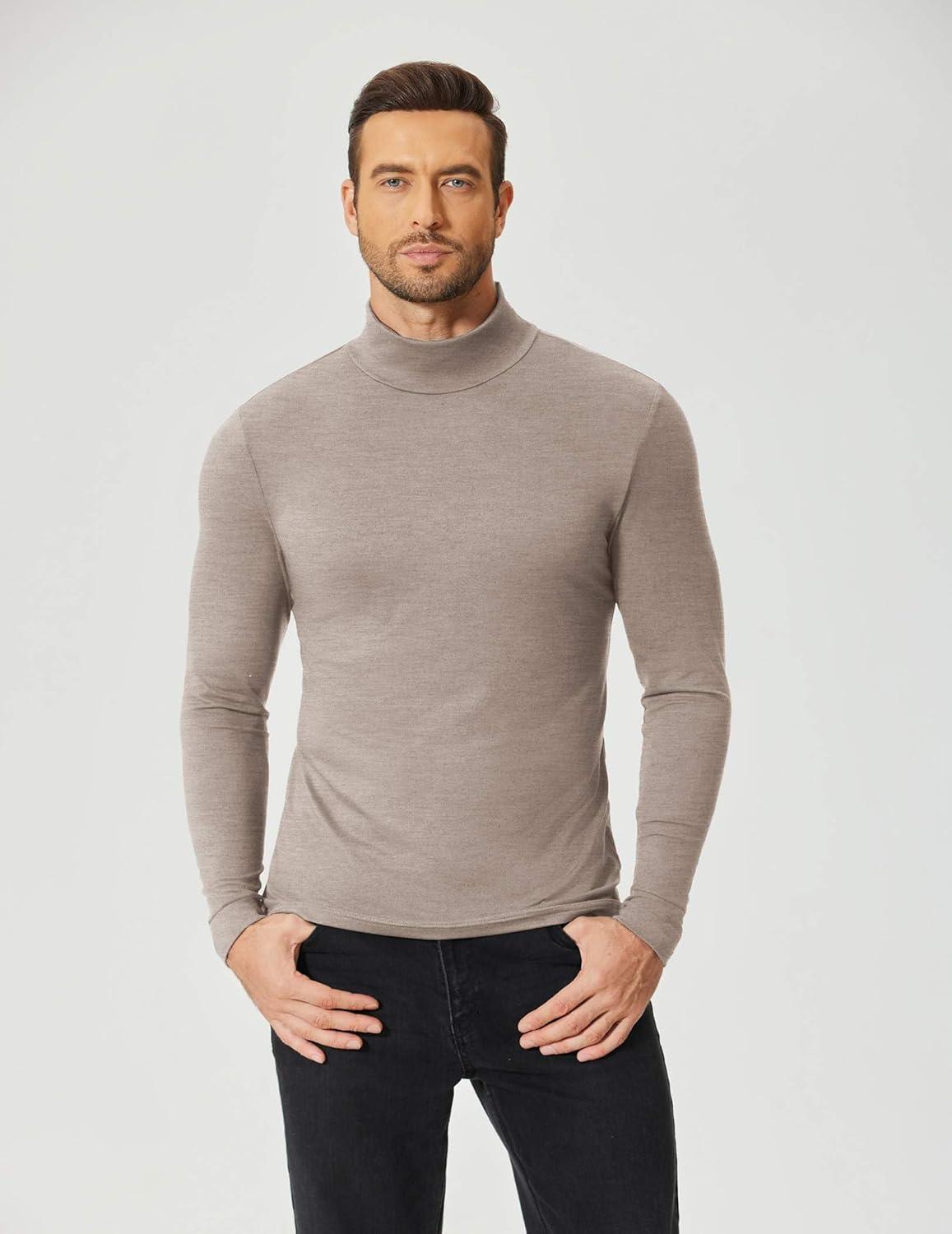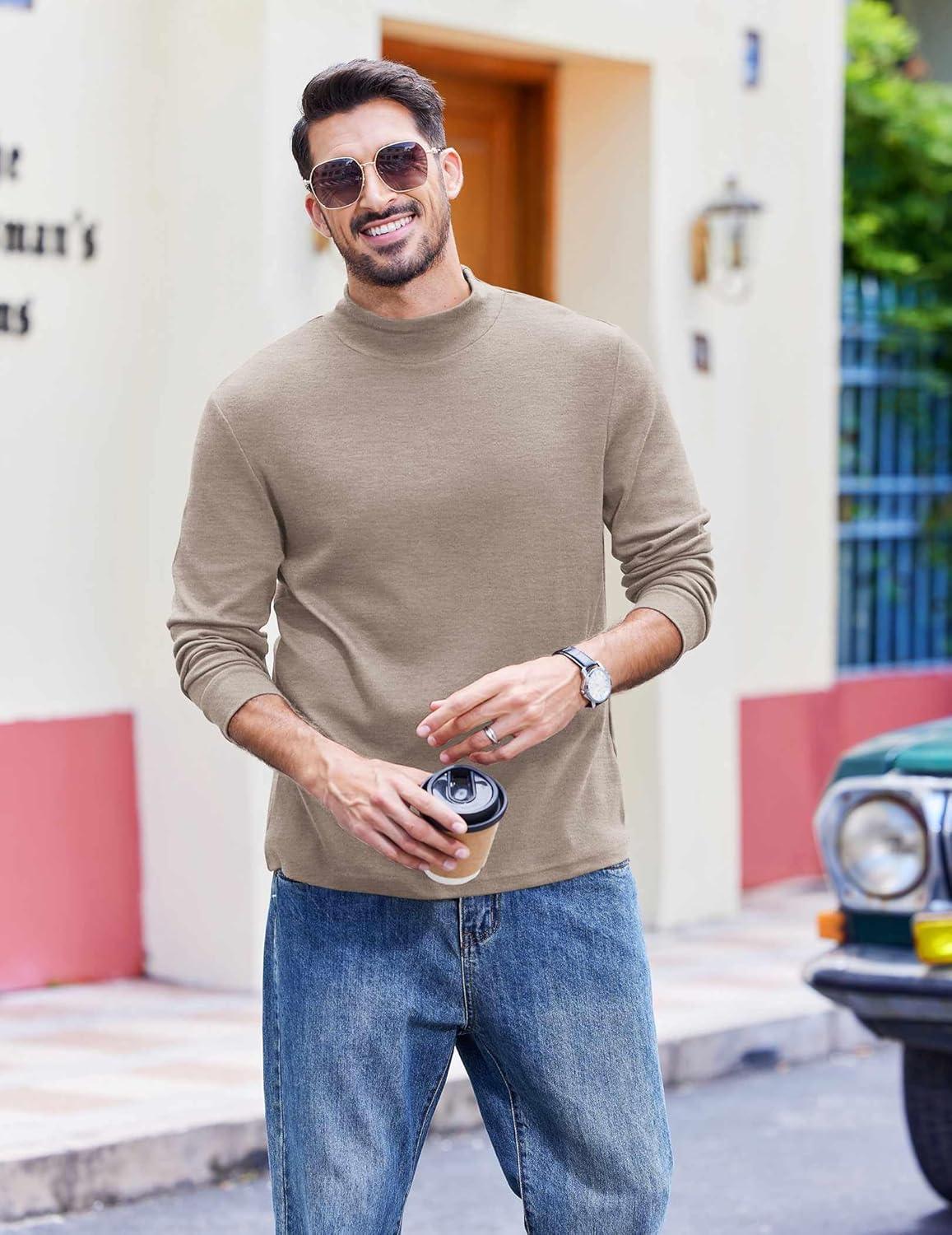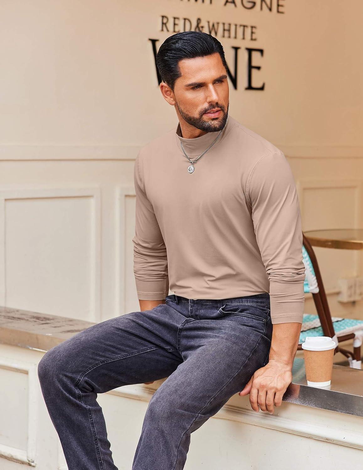 COOFANDY Mens Mock Turtleneck Long Sleeve Shirts Casual Basic T-Shirt Lightweight Mockneck Pullover Sweater for Men(Light Brown)