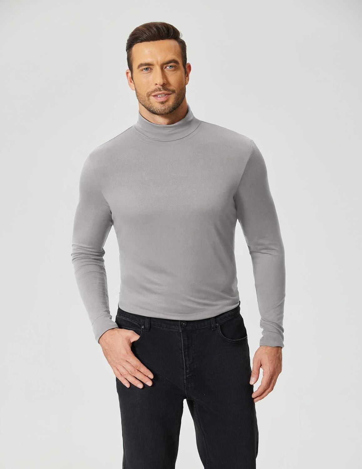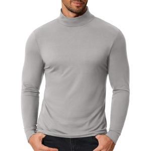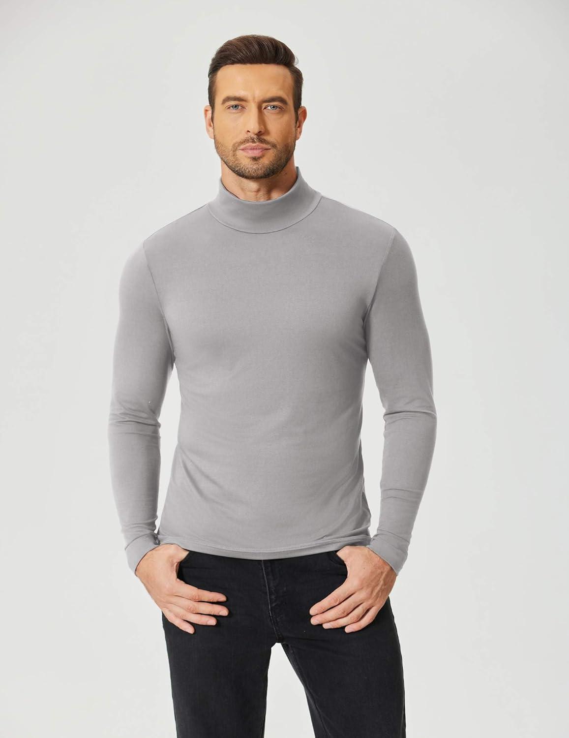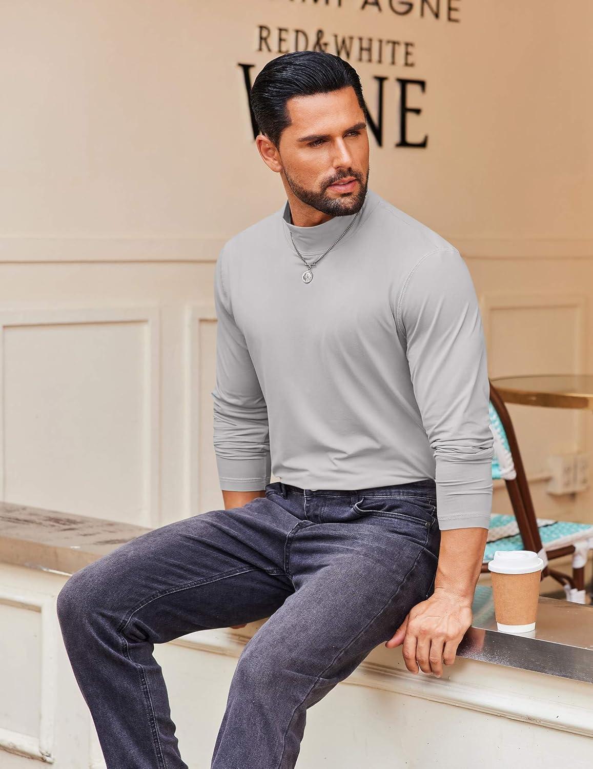 COOFANDY Mens Mock Turtleneck Long Sleeve Shirts Casual Basic T-Shirt Lightweight Mockneck Pullover Sweater for Men(Light Grey)
