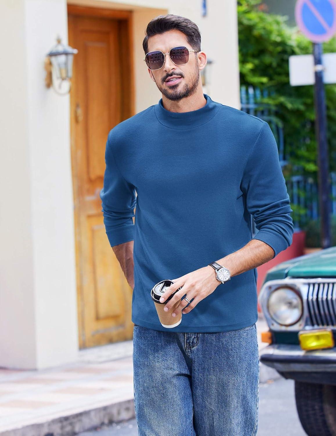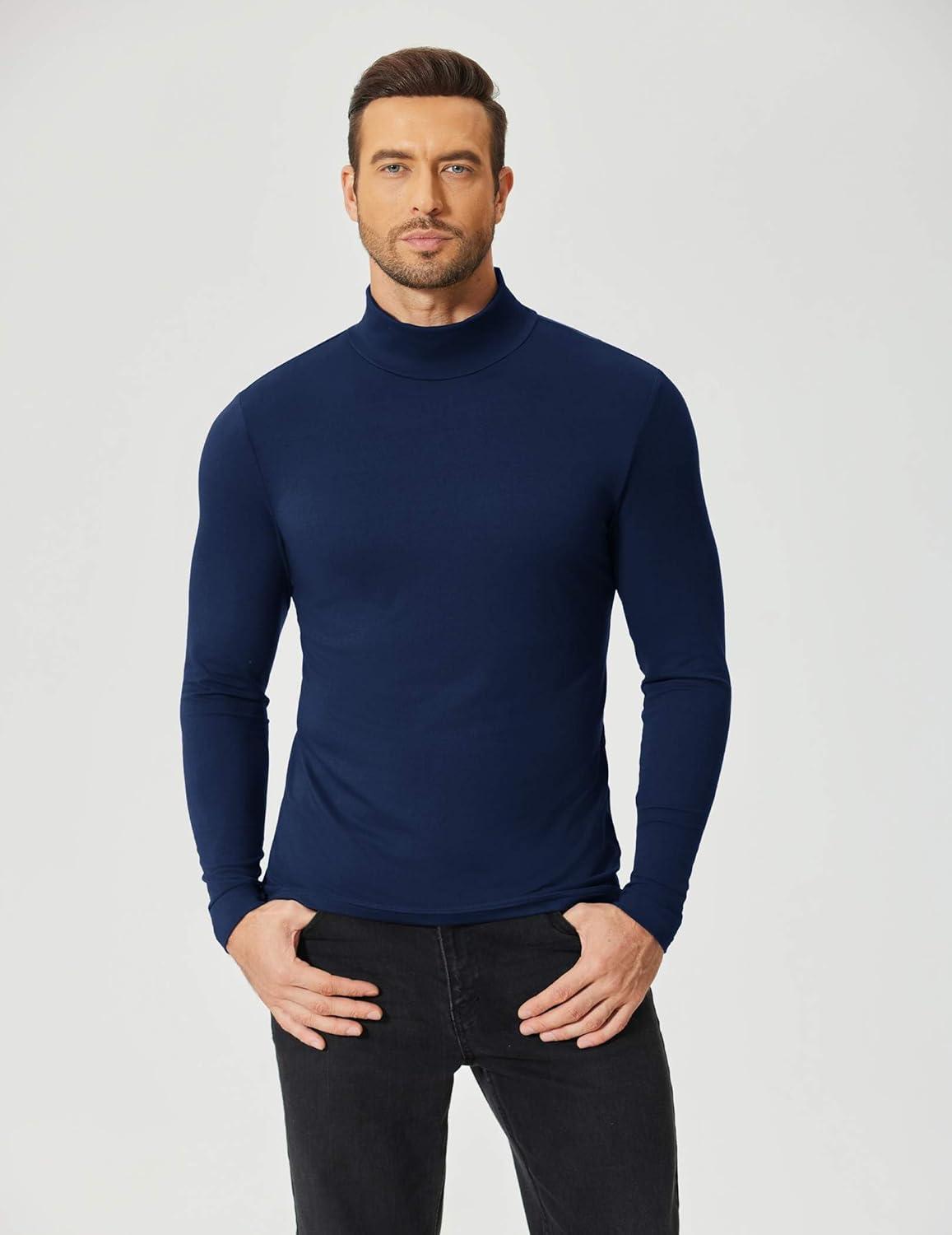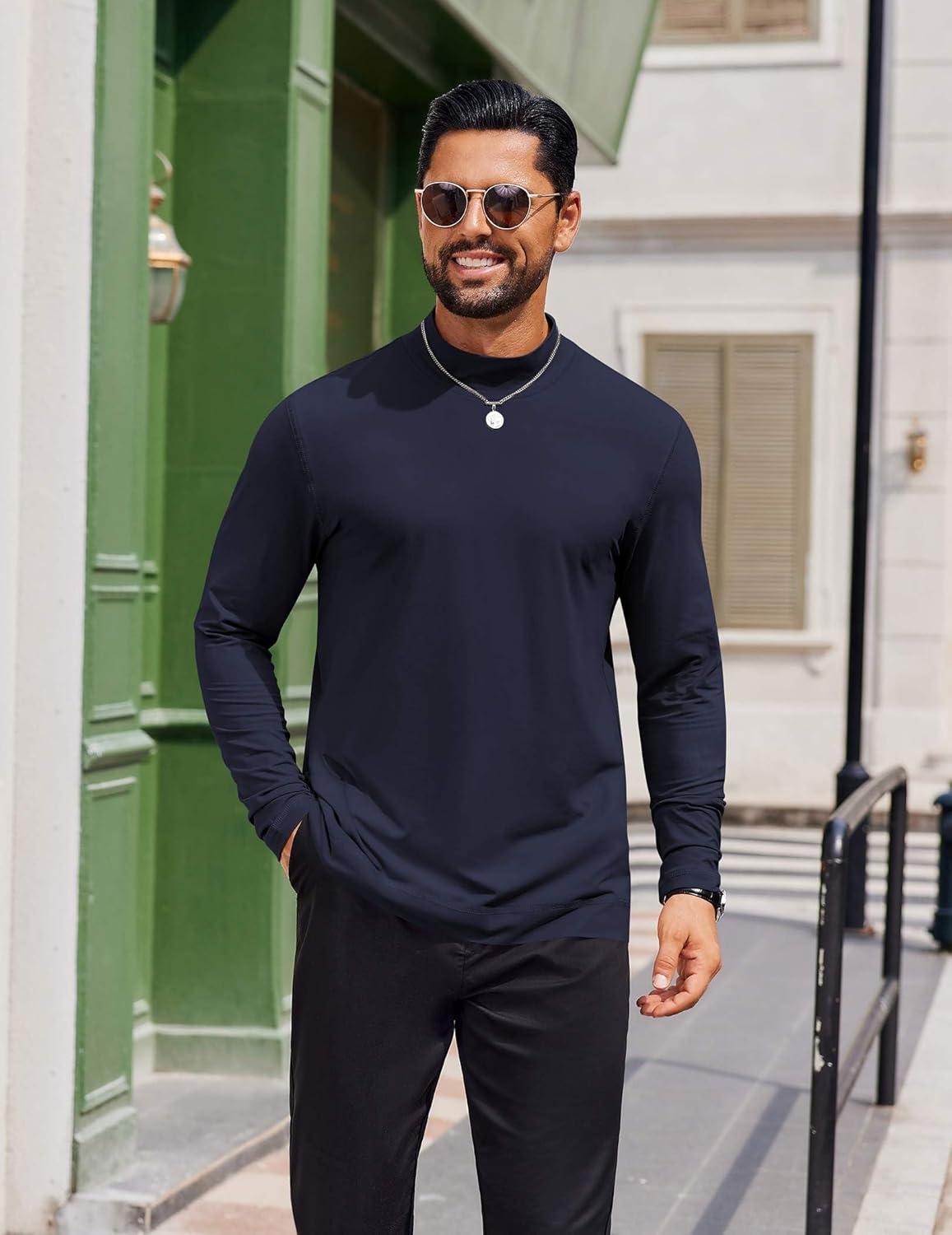 COOFANDY Mens Mock Turtleneck Long Sleeve Shirts Casual Basic T-Shirt Lightweight Mockneck Pullover Sweater for Men(Navy)