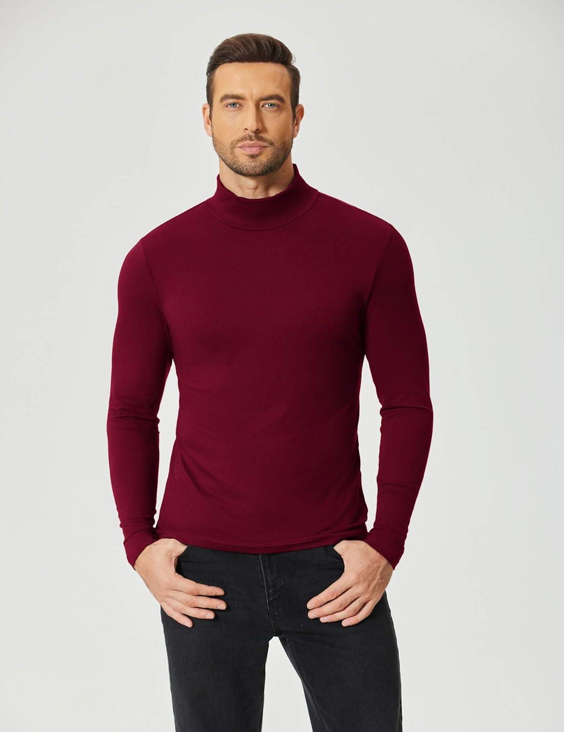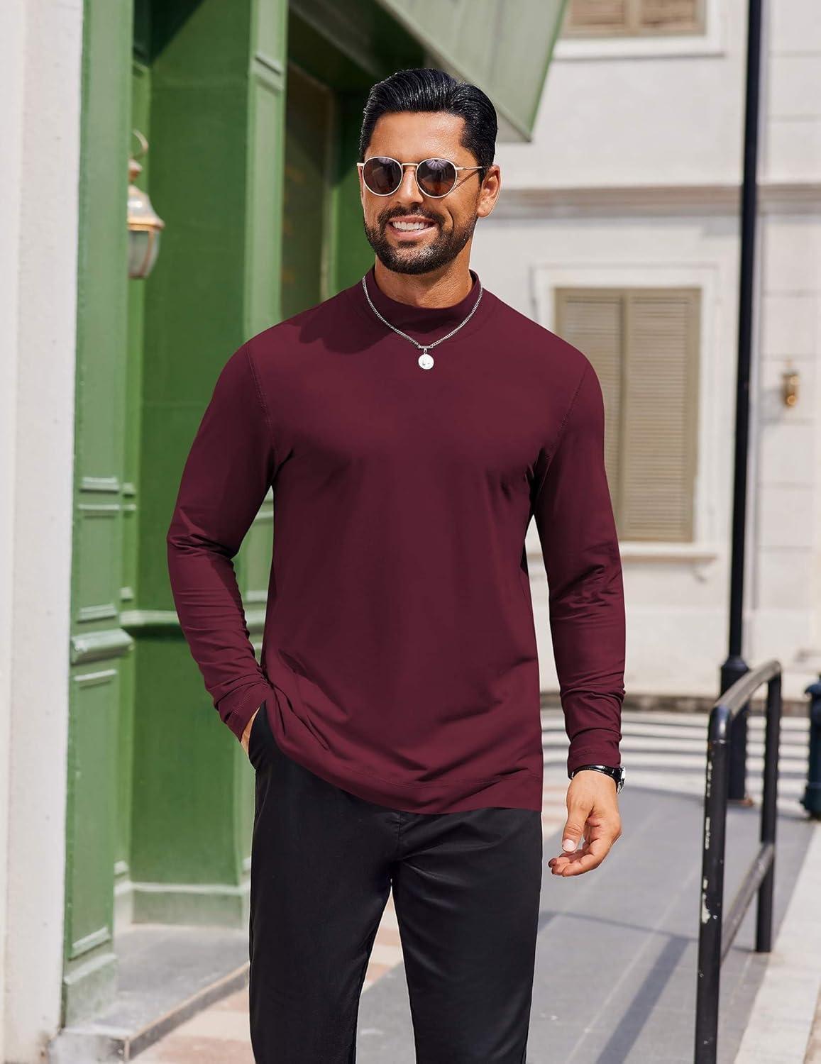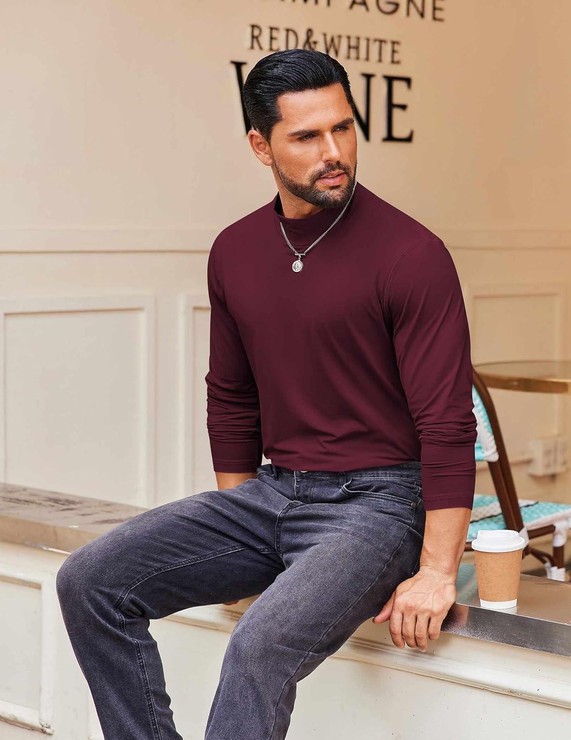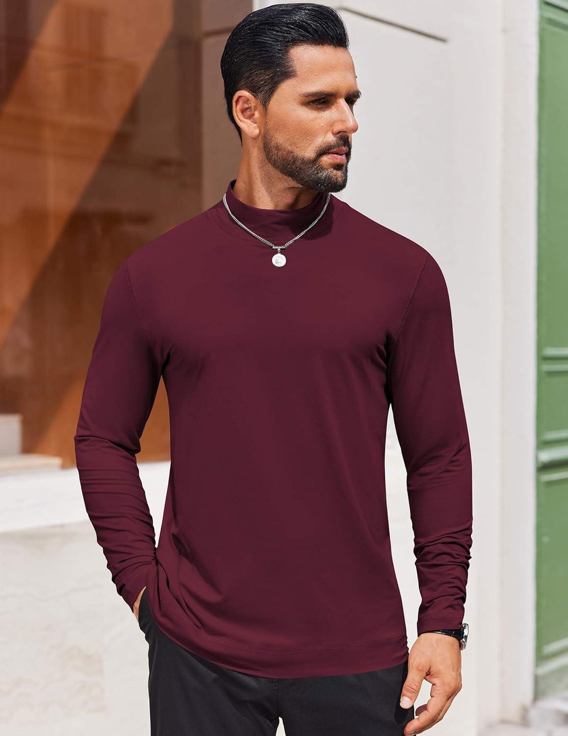COOFANDY Mens Mock Turtleneck Long Sleeve Shirts Casual Basic T-Shirt Lightweight Mockneck Pullover Sweater for Men(Red)