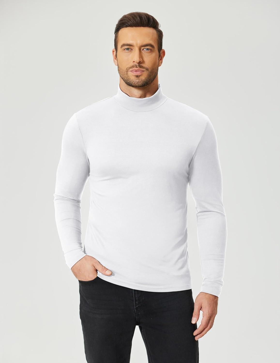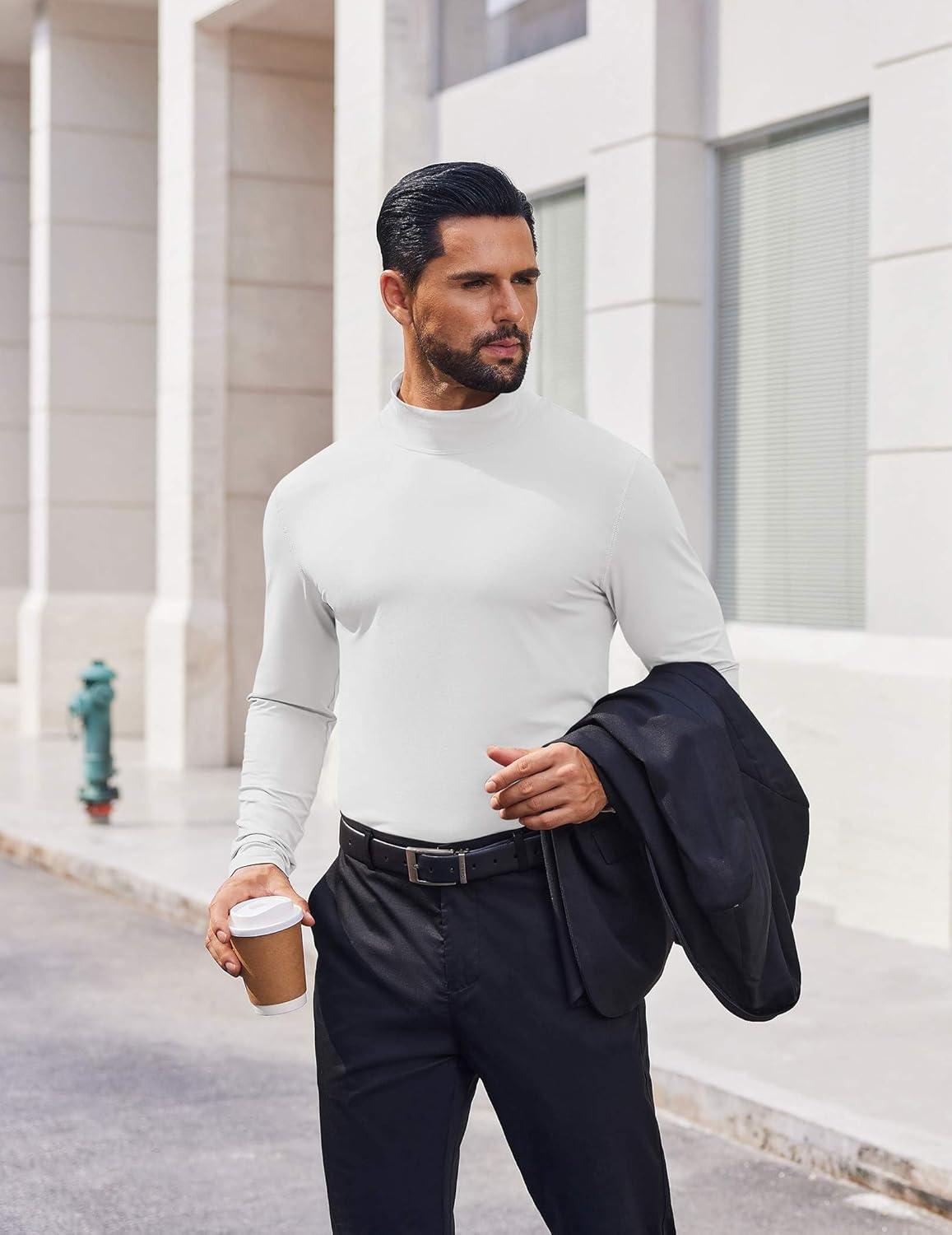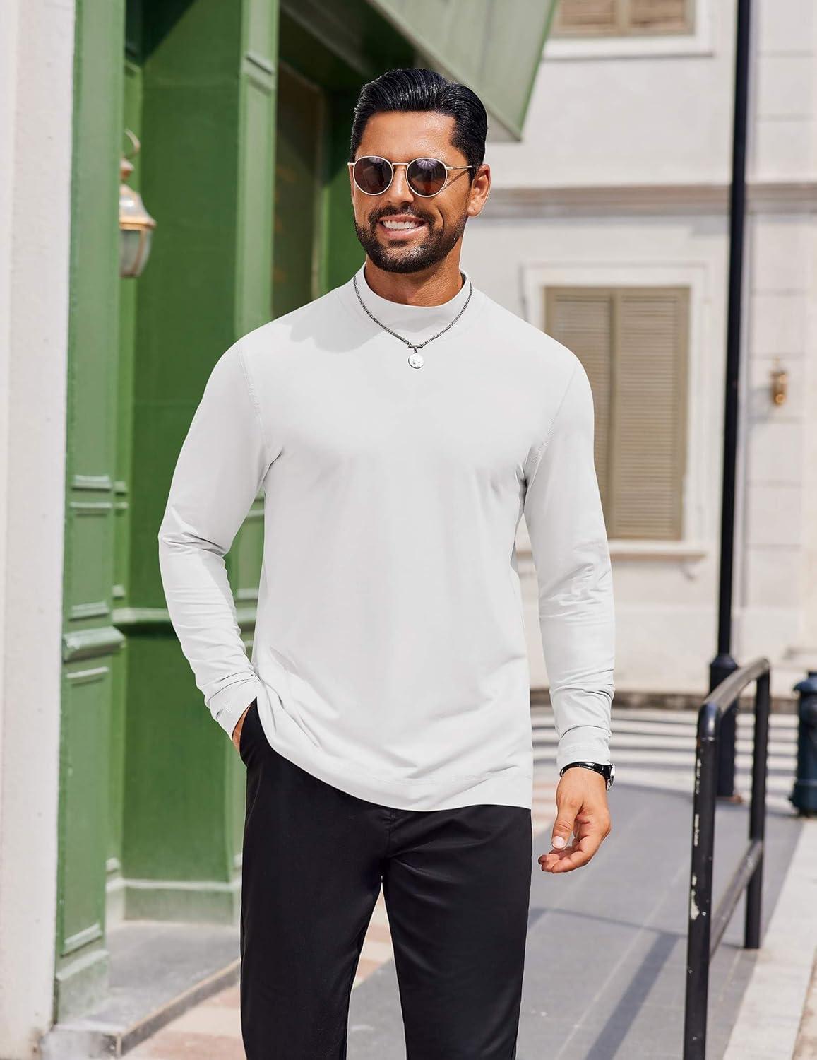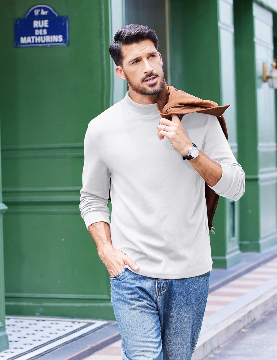 COOFANDY Mens Mock Turtleneck Long Sleeve Shirts Casual Basic T-Shirt Lightweight Mockneck Pullover Sweater for Men(White)