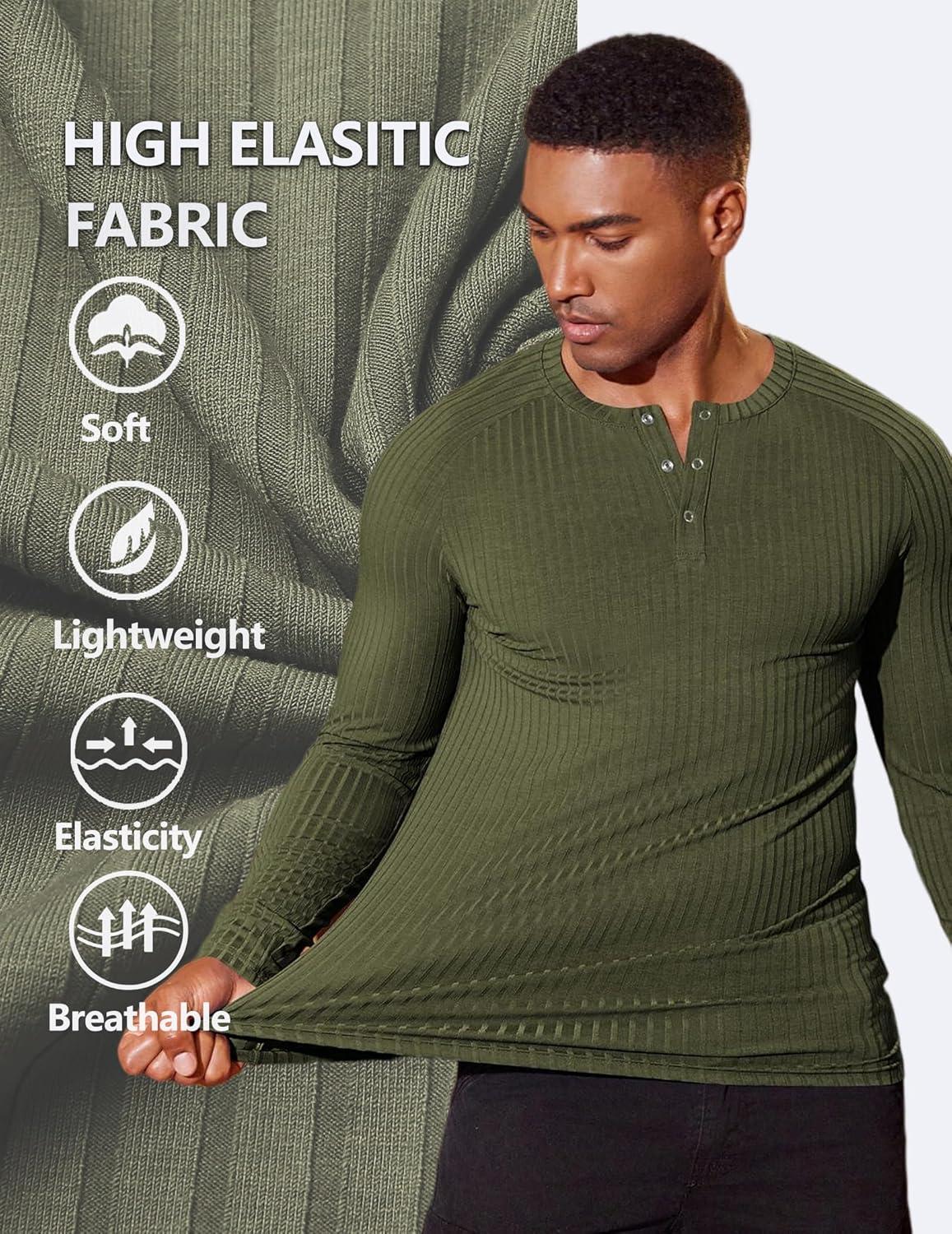 COOFANDY Men’s Muscle Slim Fit T-Shirt Long Sleeve Henley Shirts Casual Gym Workout Athletic Tee Shirts(Army Green)