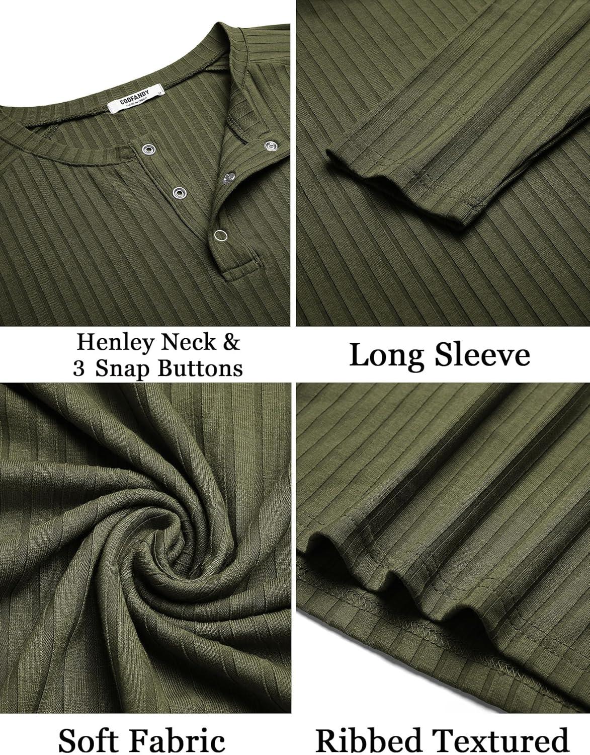 COOFANDY Men’s Henley Shirts Long Sleeve Casual Pullover T-Shirt Fashion Basic Button Shirts(Army Green)