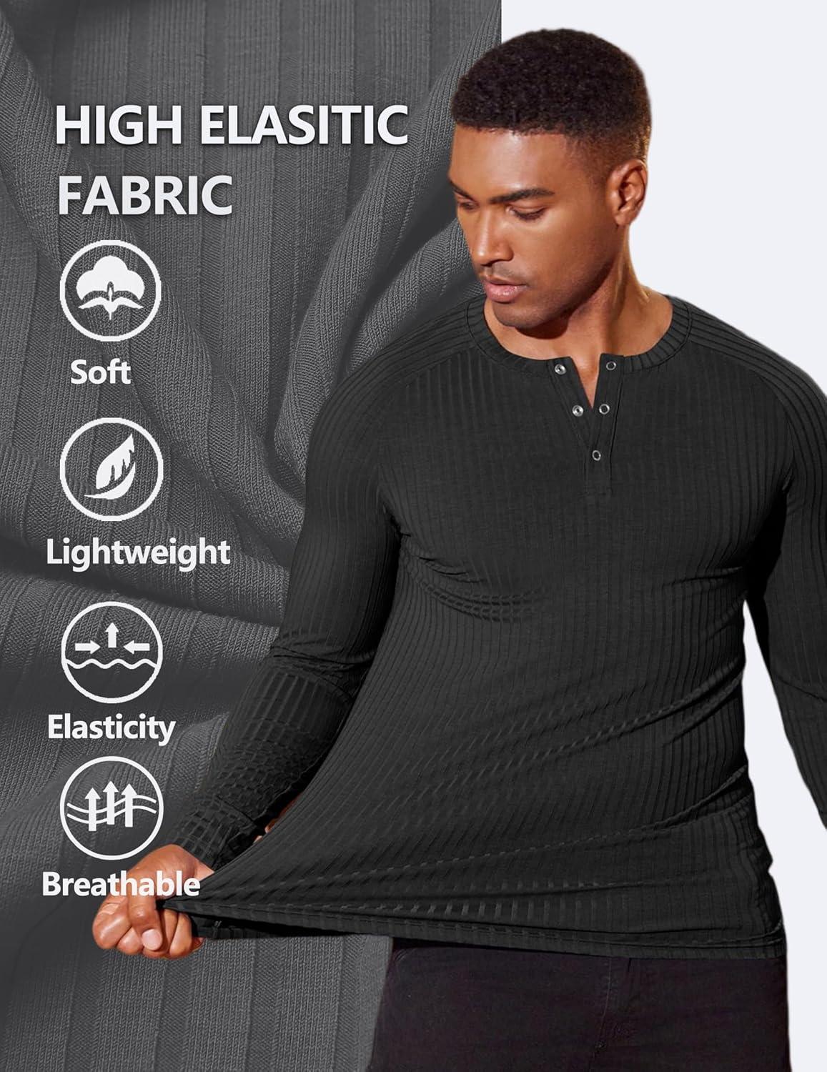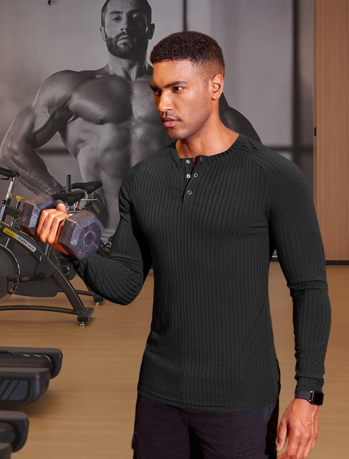 COOFANDY Men’s Muscle Slim Fit T-Shirt Long Sleeve Henley Shirts Casual Gym Workout Athletic Tee Shirts(Black)