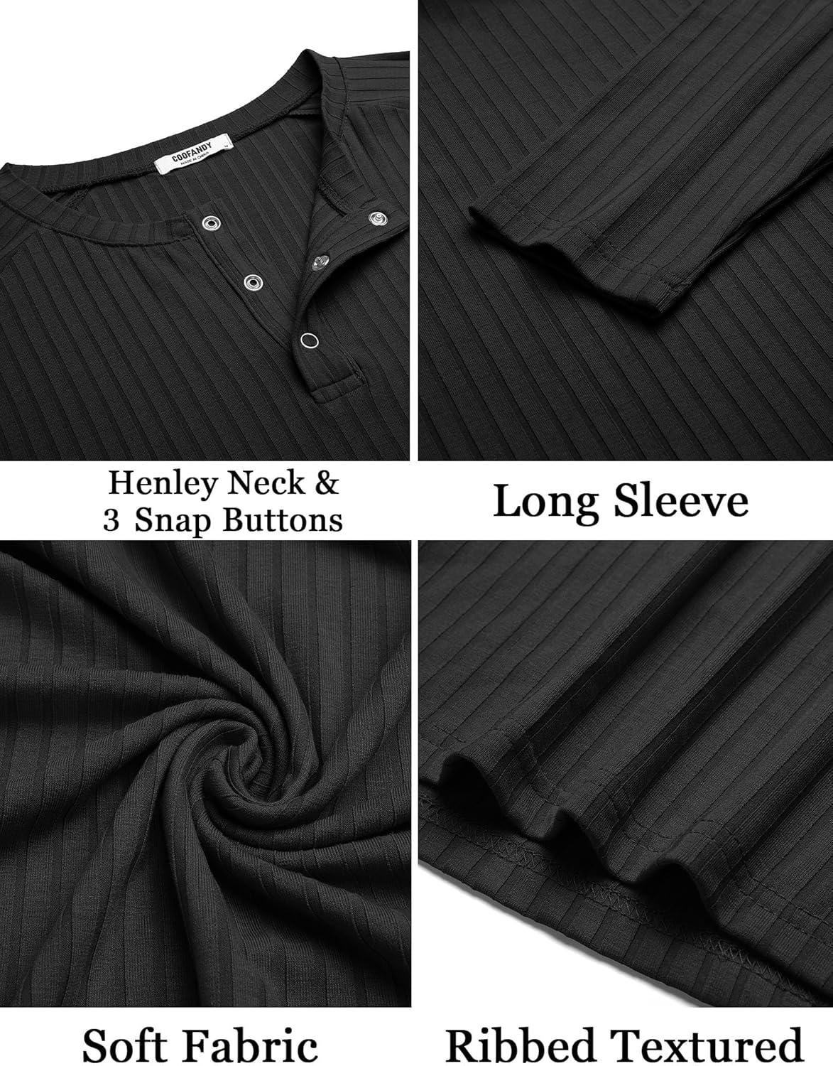 COOFANDY Men’s Henley Shirts Long Sleeve Lightweight Button T-Shirt Casual Basic Tee Top(Black)