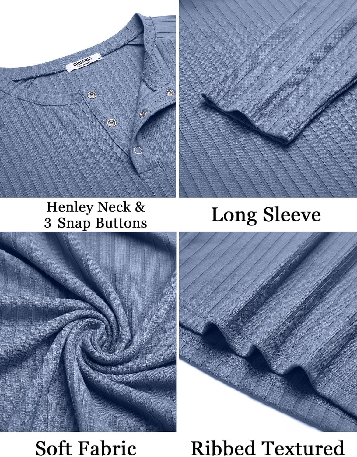 COOFANDY Mens Henley Shirts Long Sleeve Casual Pullover Shirt Fashion Button T-Shirt(Heather Blue)