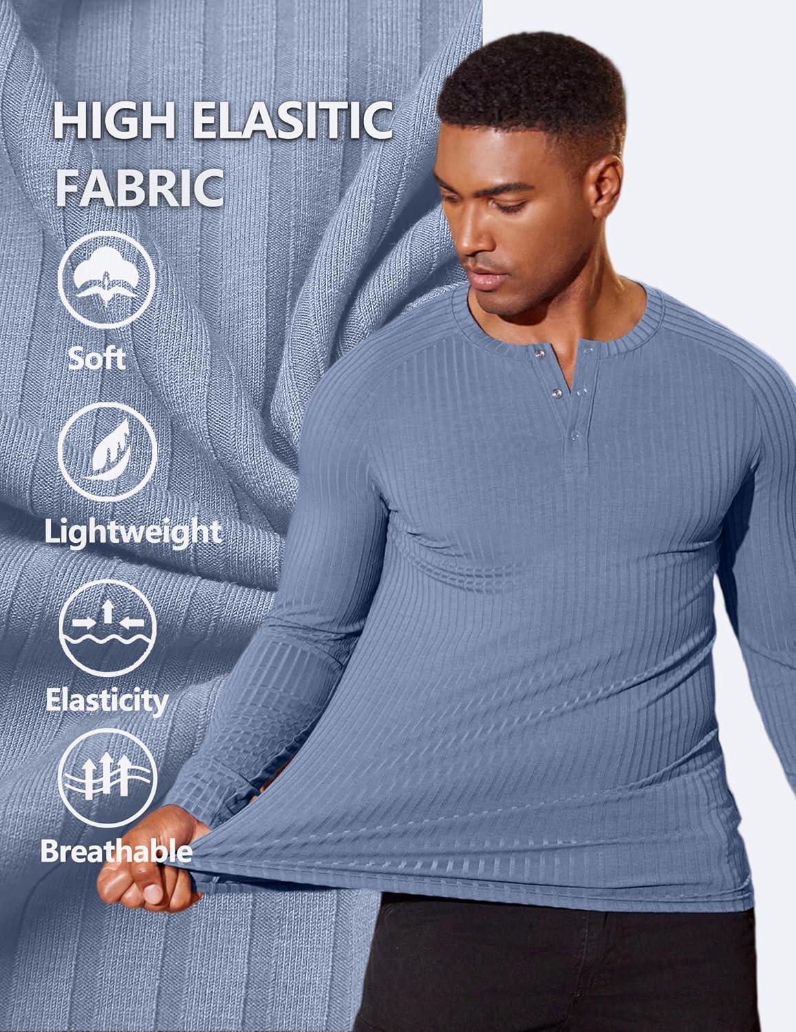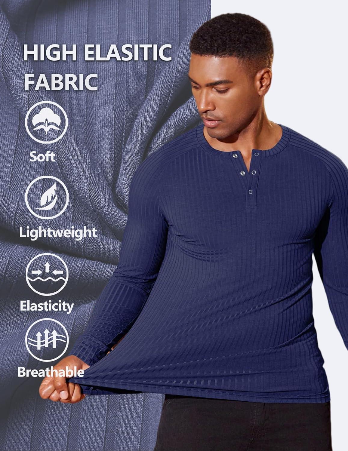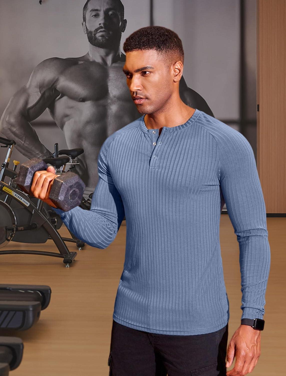 COOFANDY Men’s Muscle Slim Fit T-Shirt Long Sleeve Henley Shirts Casual Gym Workout Athletic Tee Shirts(Blue)