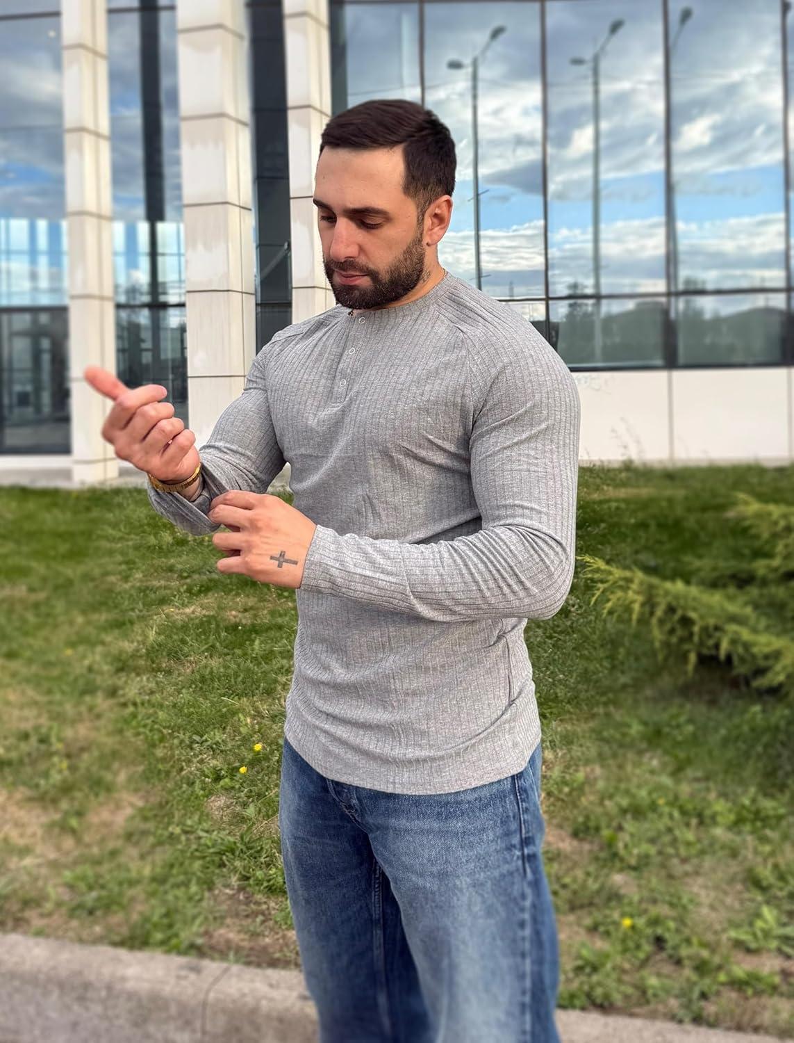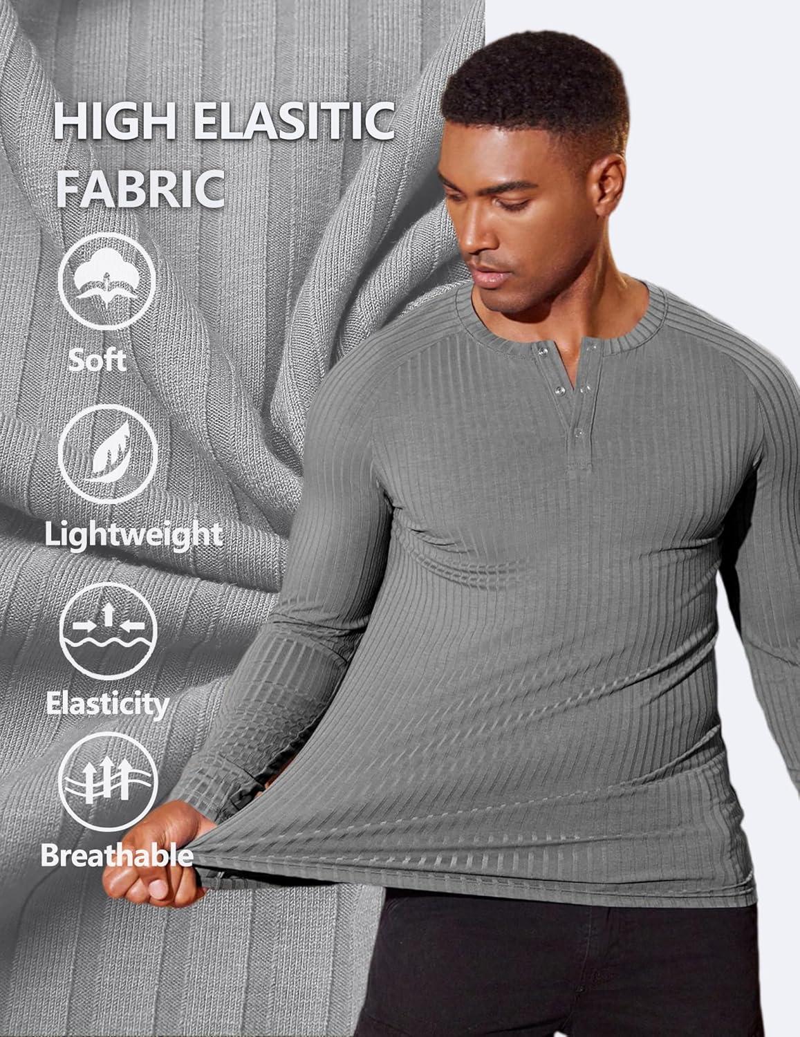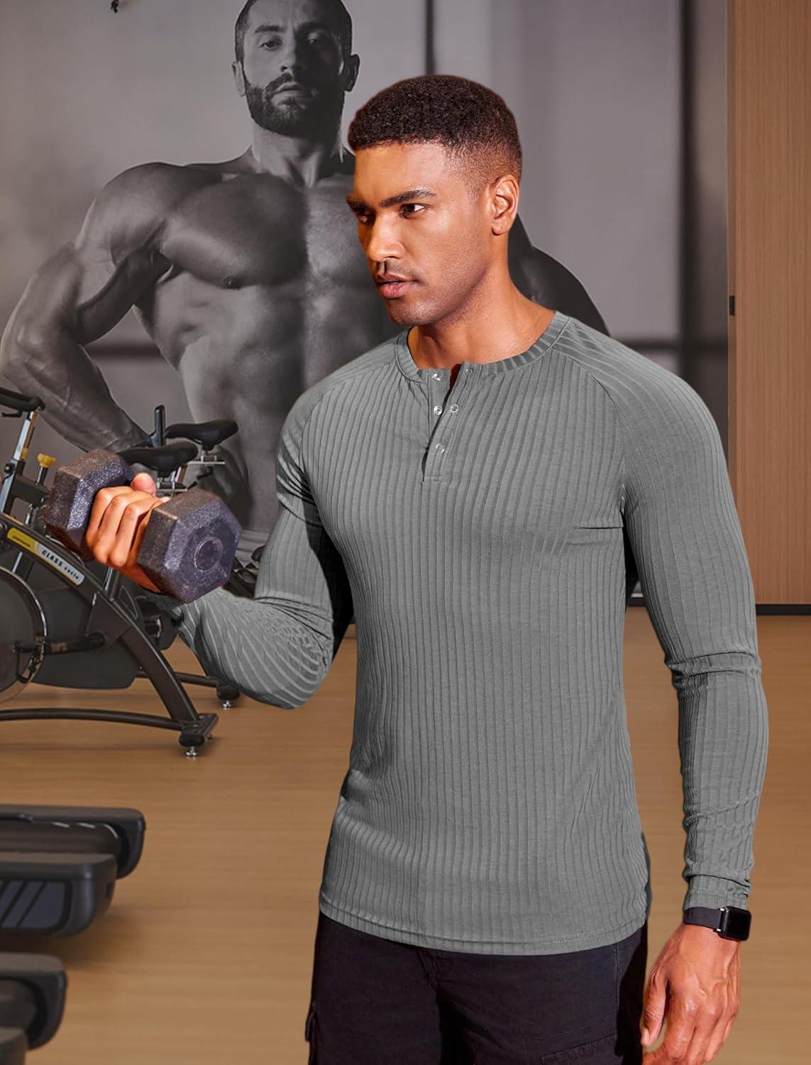 COOFANDY Men’s Muscle Slim Fit T-Shirt Long Sleeve Henley Shirts Casual Gym Workout Athletic Tee Shirts(Grey)