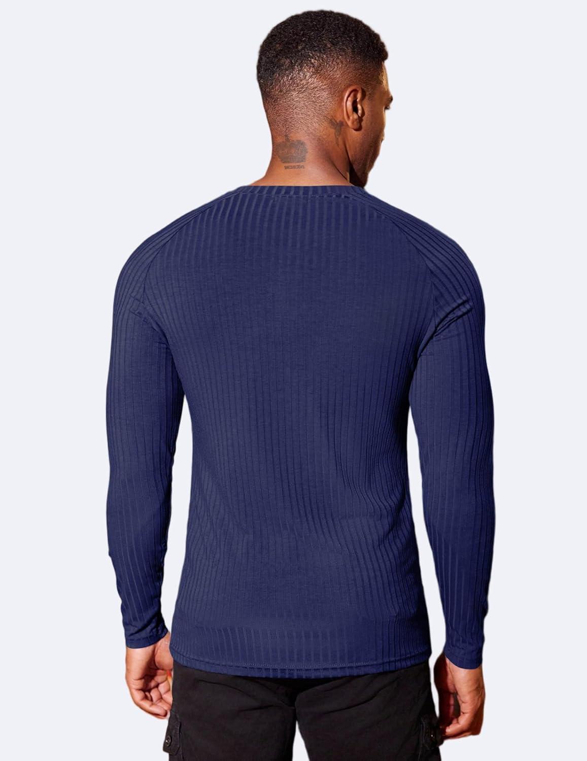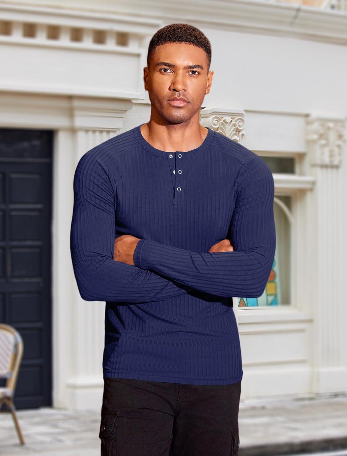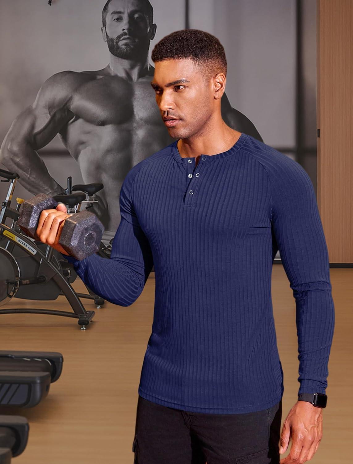 COOFANDY Men’s Muscle Slim Fit T-Shirt Long Sleeve Henley Shirts Casual Gym Workout Athletic Tee Shirts(Navy Blue)