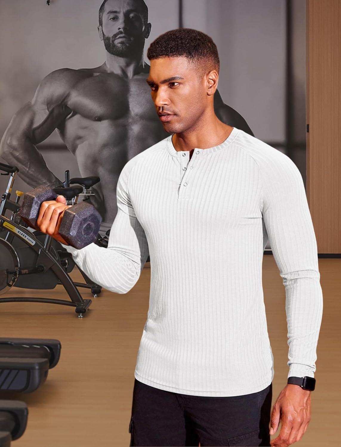 COOFANDY Men’s Muscle Slim Fit T-Shirt Long Sleeve Henley Shirts Casual Gym Workout Athletic Tee Shirts(White)