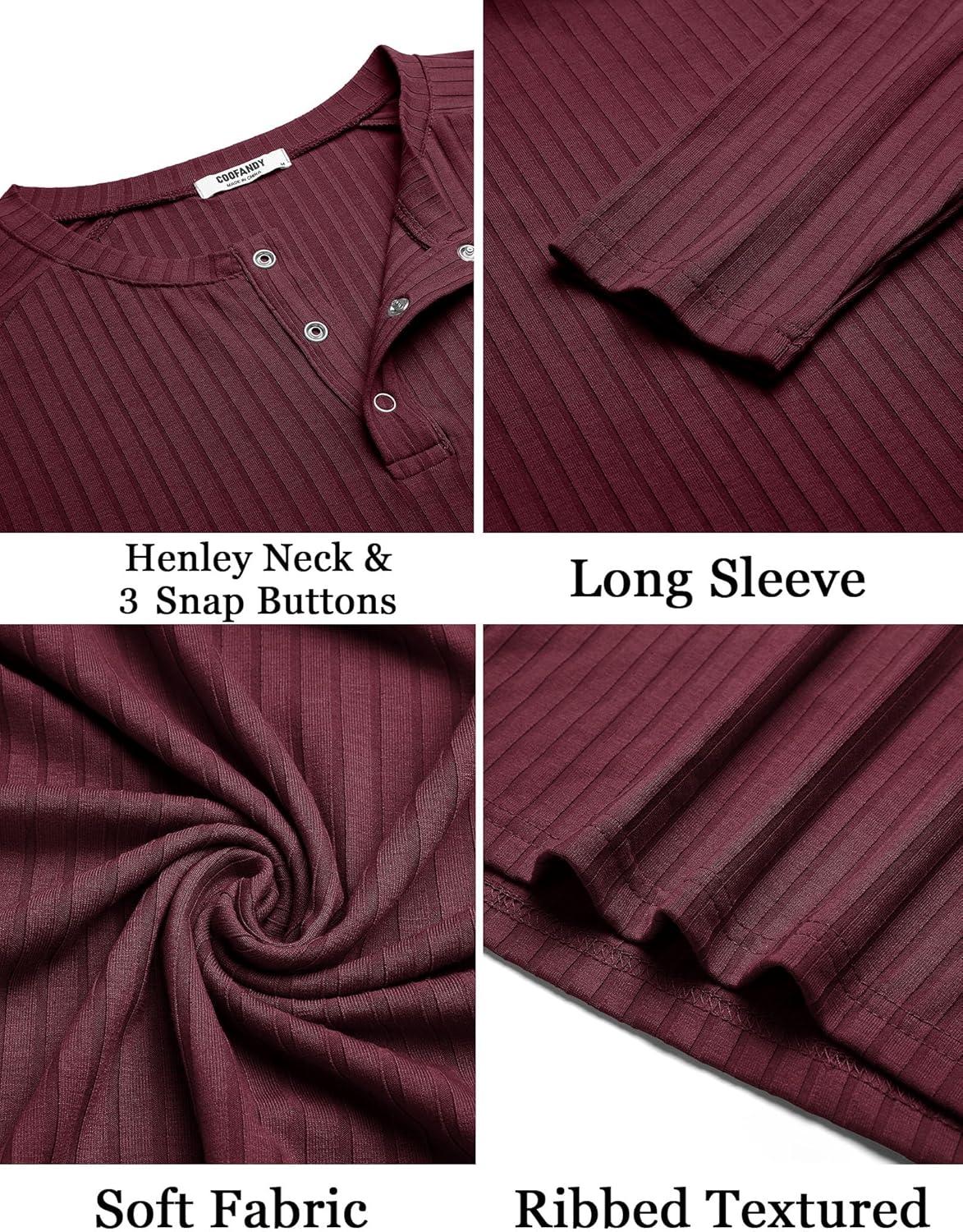 COOFANDY Men’s Henley Shirts Long Sleeve Casual Pullover T-Shirt Fashion Basic Button Shirts(Wine Red)