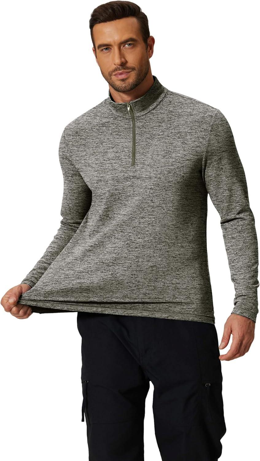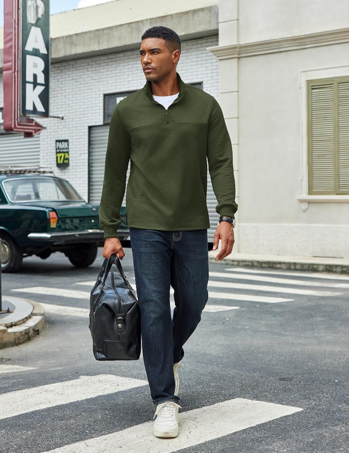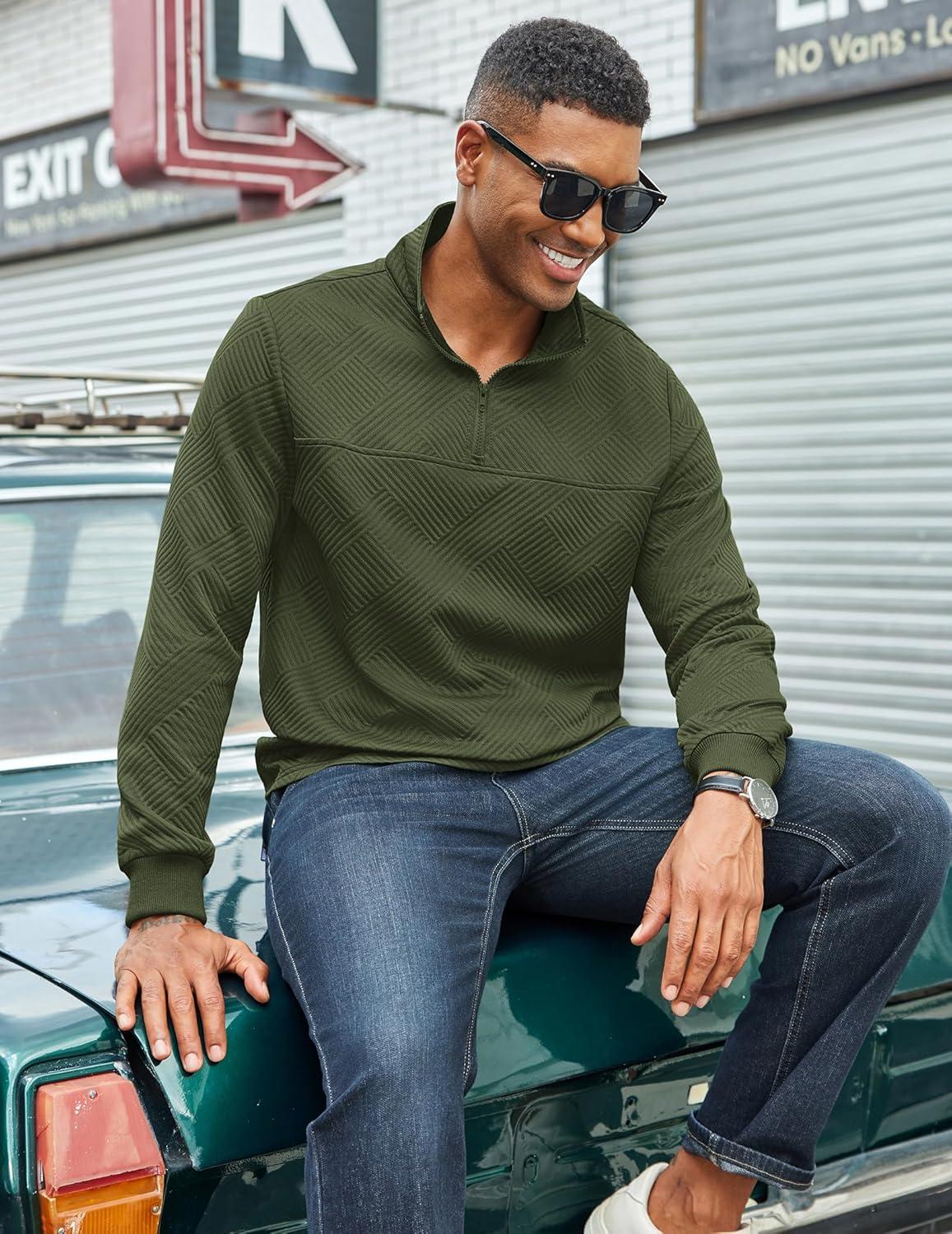 COOFANDY Men’s Quarter Zip Pullover Lightweight Textured T-Shirts Long Sleeve Casual Mock Neck Polo Shirts(Army Green)