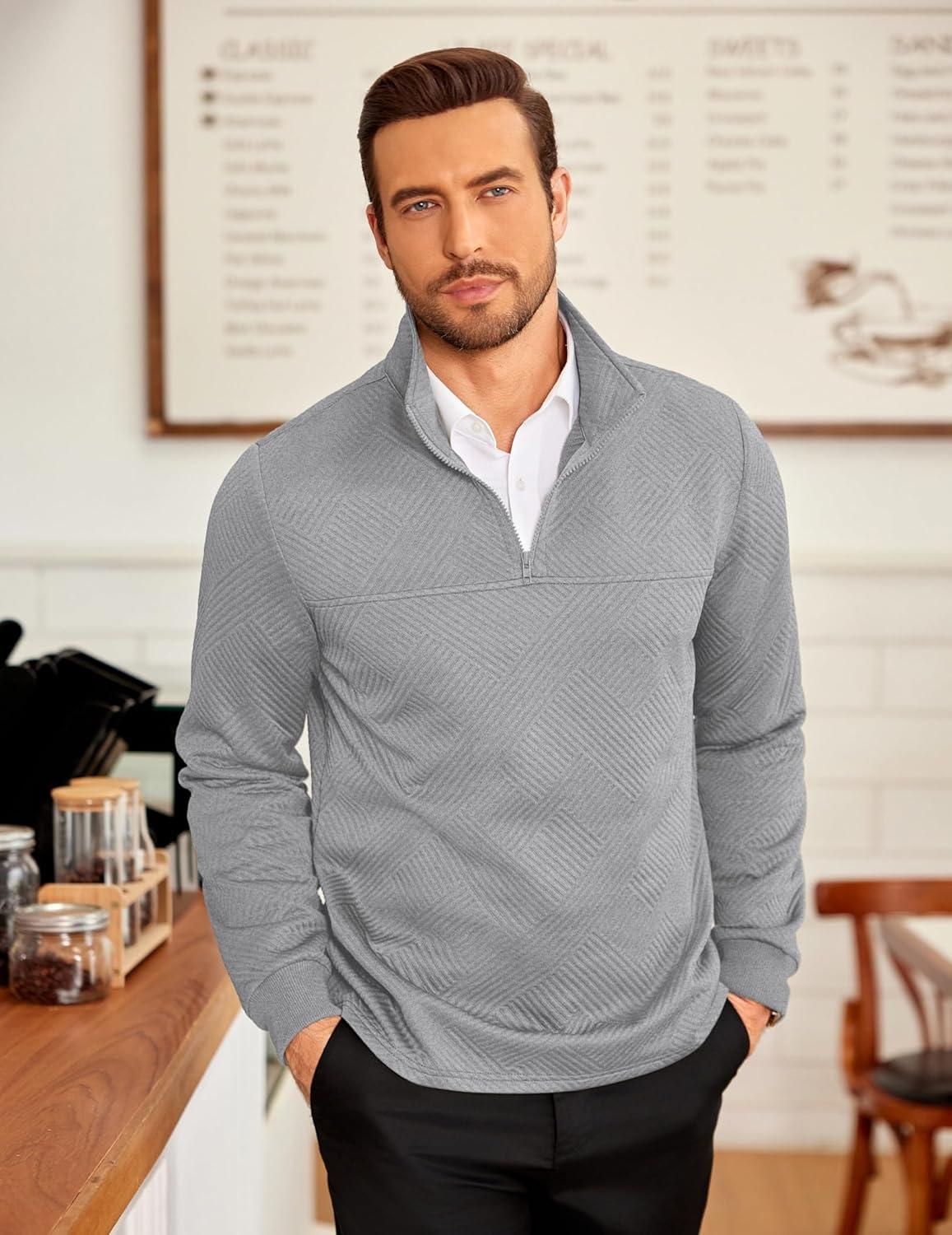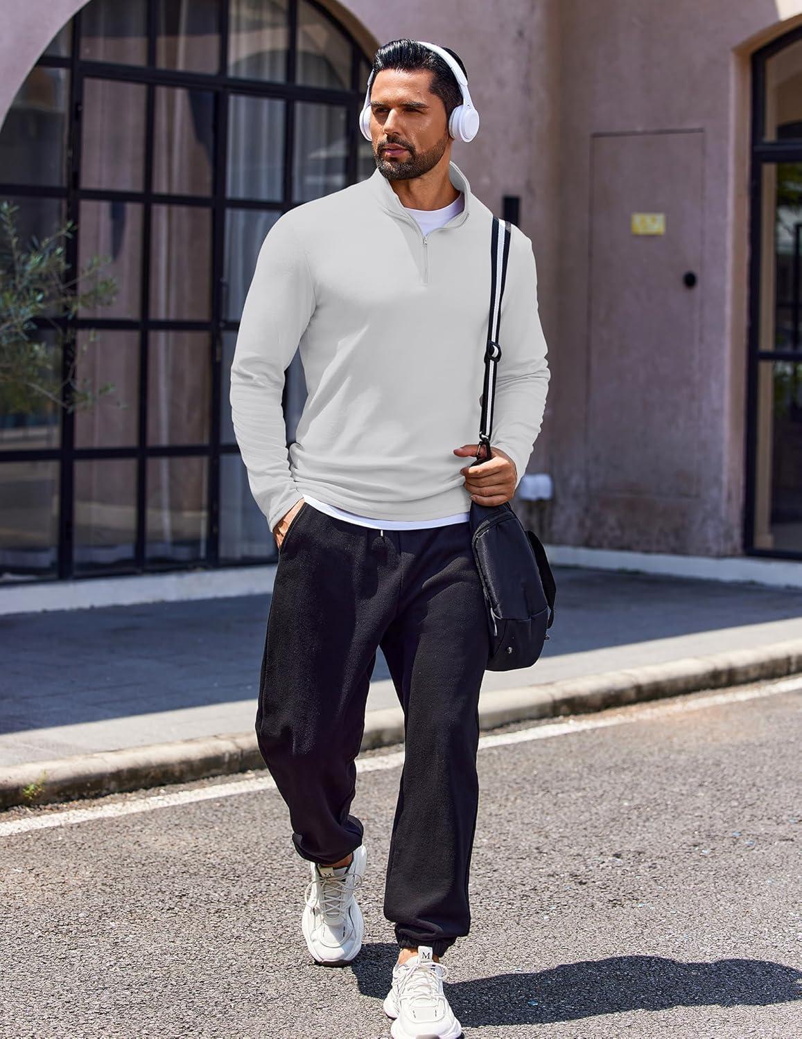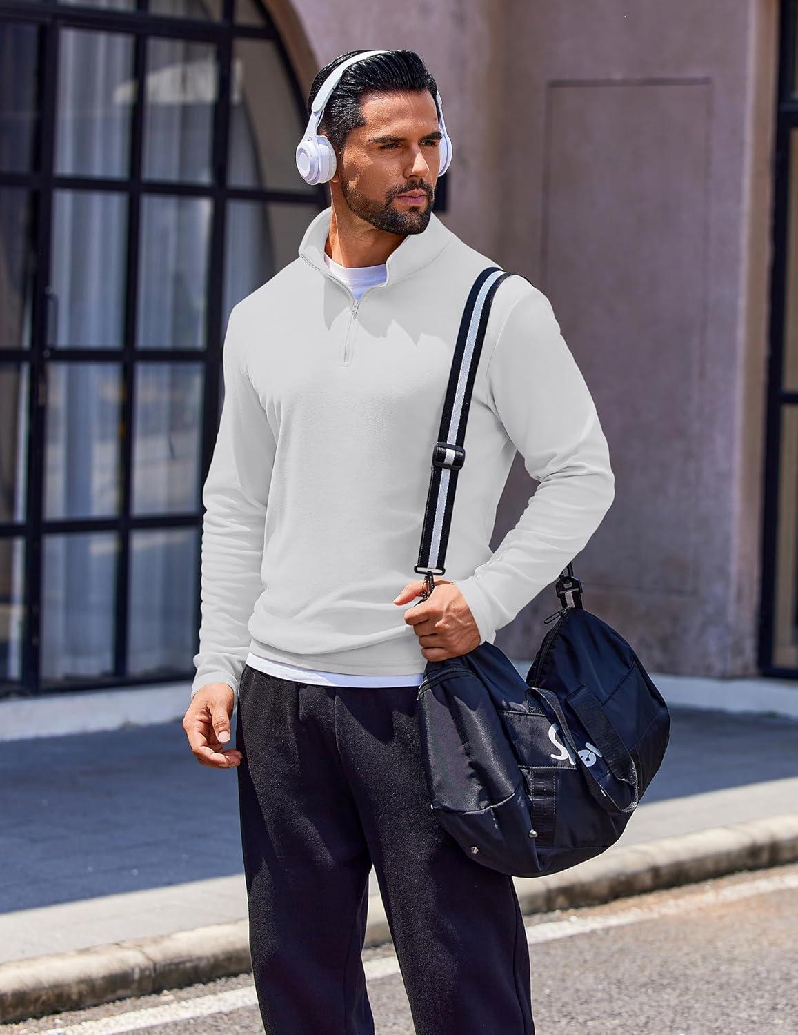 COOFANDY Quarter Zip Pullover Men Long Sleeve Sweatshirts for Men Fleece Sweater Fall(Light Grey)