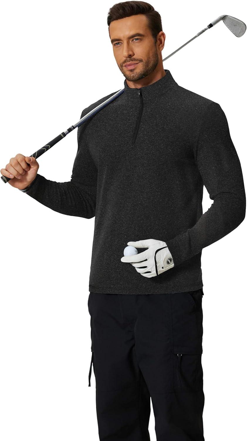 COOFANDY Men’s Quarter Zip Pullover Lightweight Textured T-Shirts Long Sleeve Casual Mock Neck Polo Shirts(All Black)