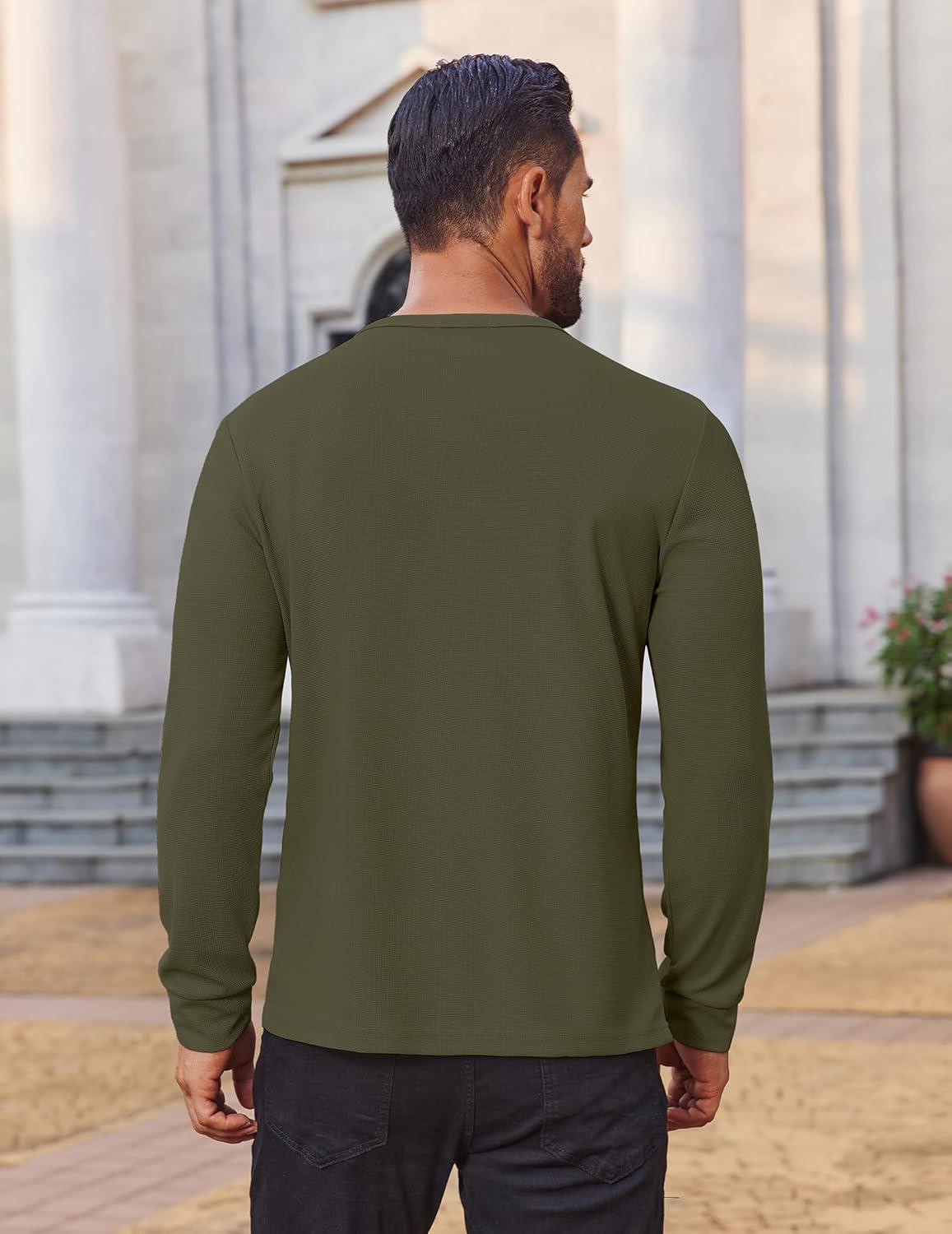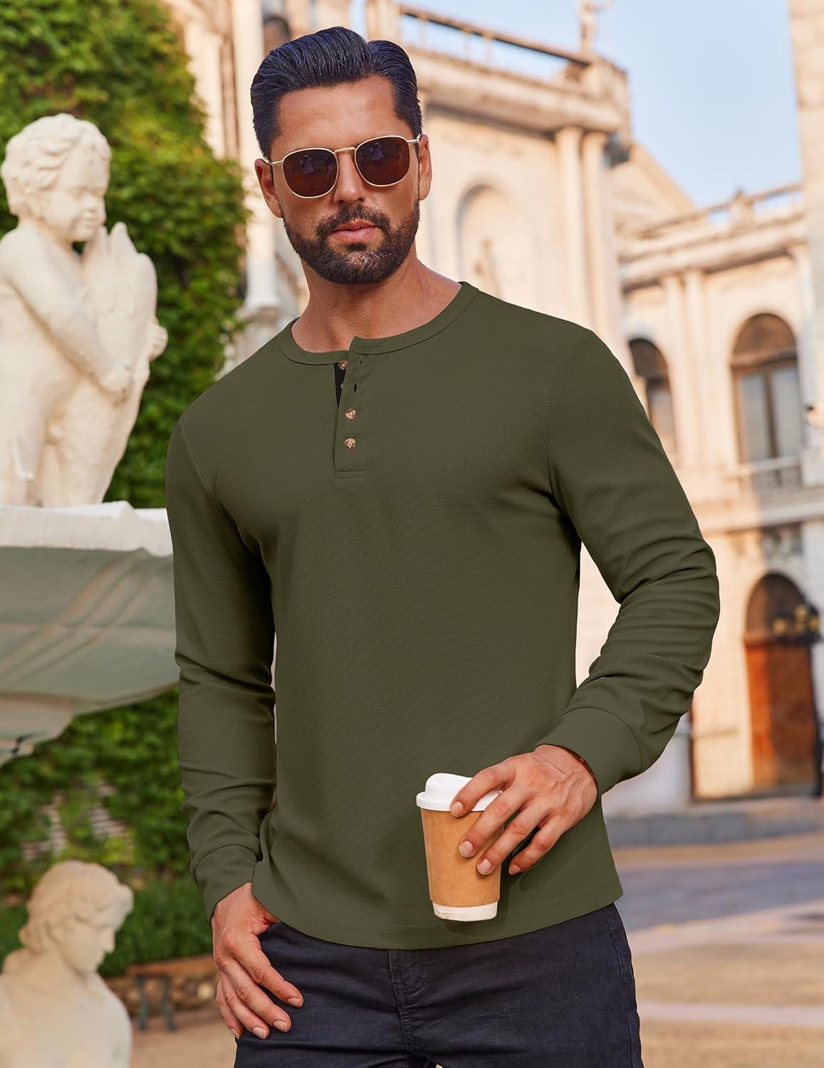 COOFANDY Mens Waffle Henley Shirts Long Sleeve Casual T-Shirt Basic Lightweight Pullover Tees(Army Green)