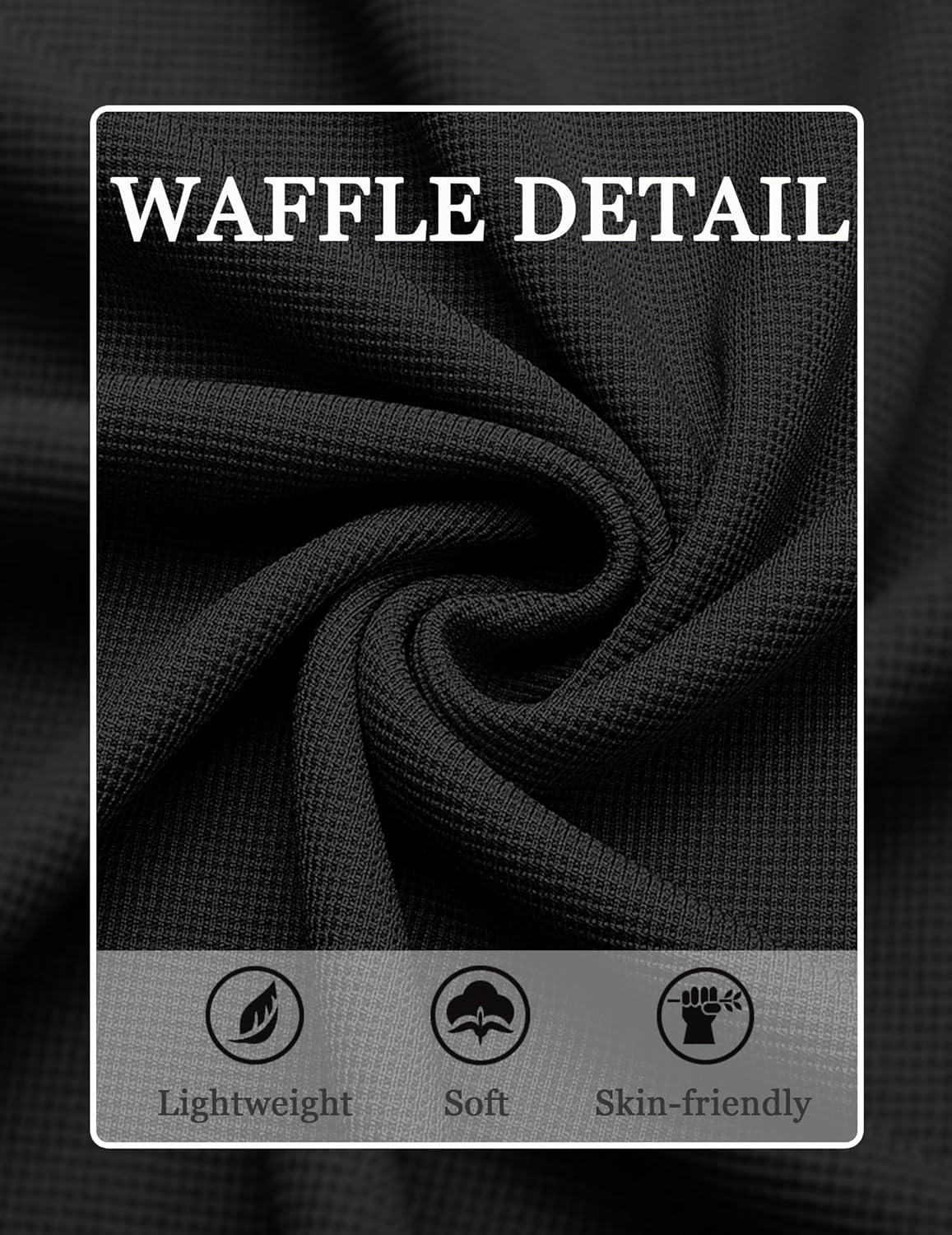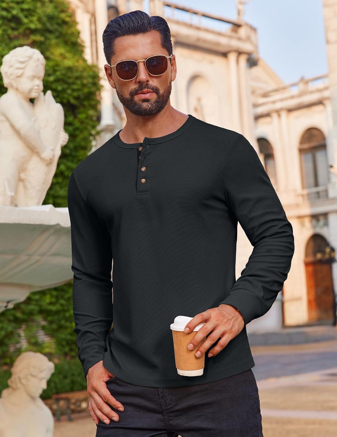 COOFANDY Mens Waffle Henley Shirts Long Sleeve Casual T-Shirt Basic Lightweight Pullover Tees(Black)