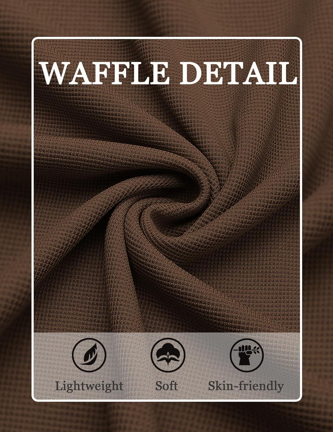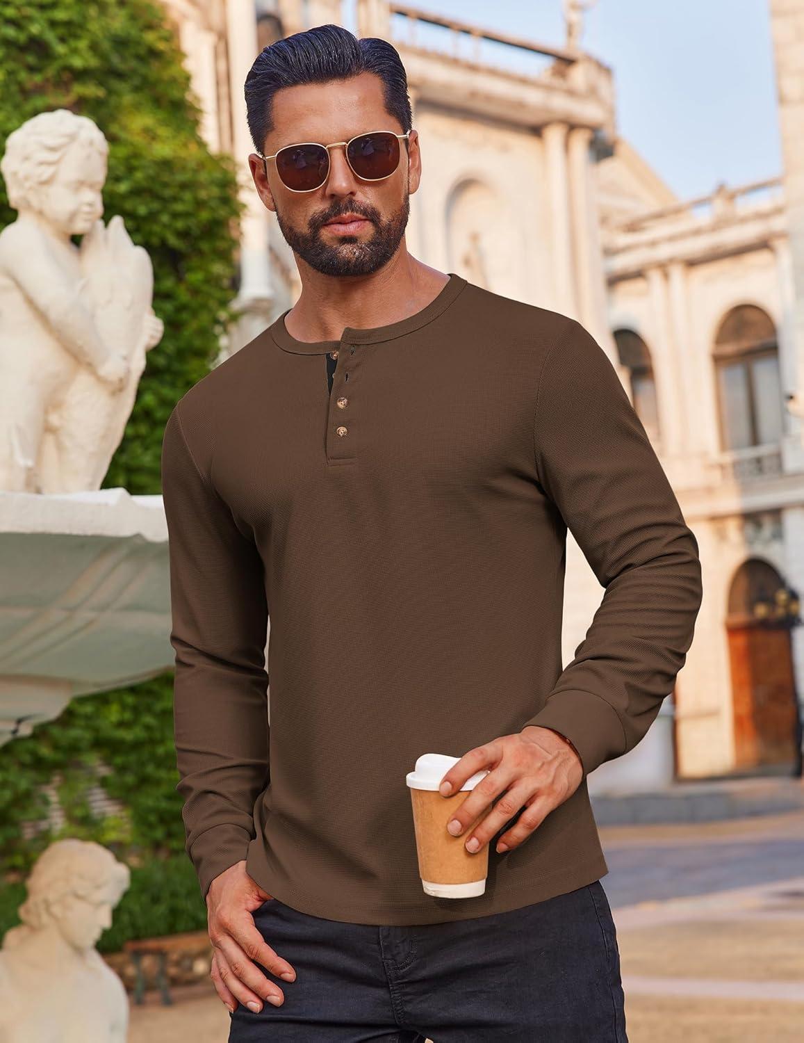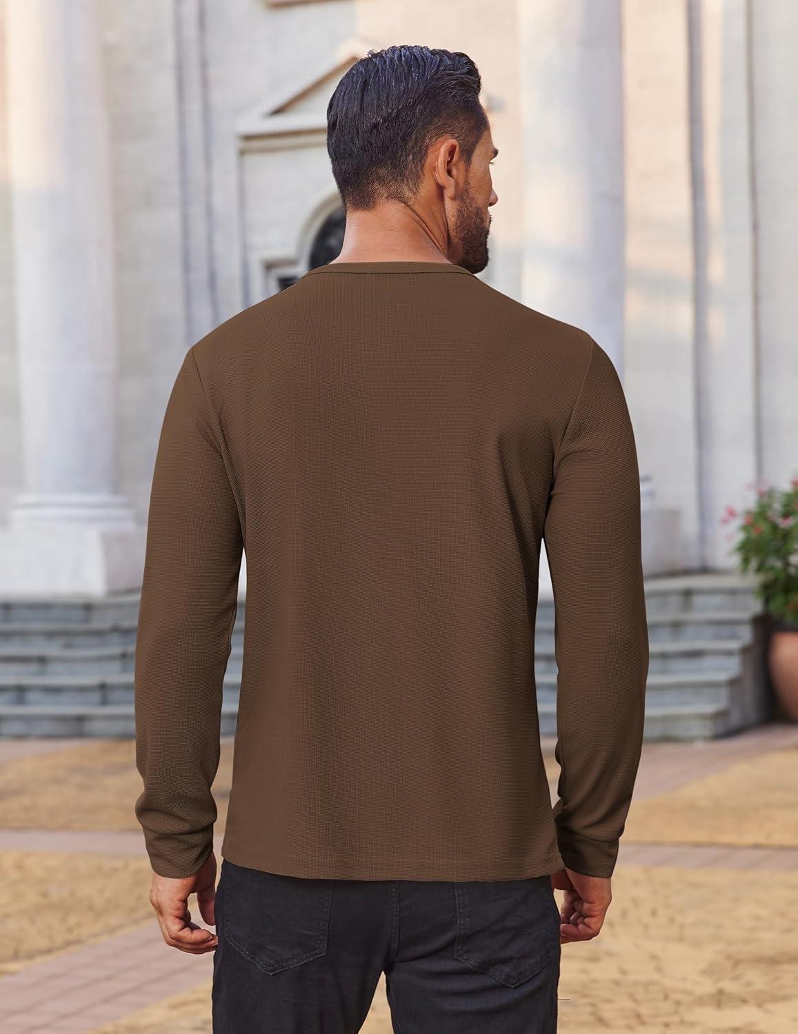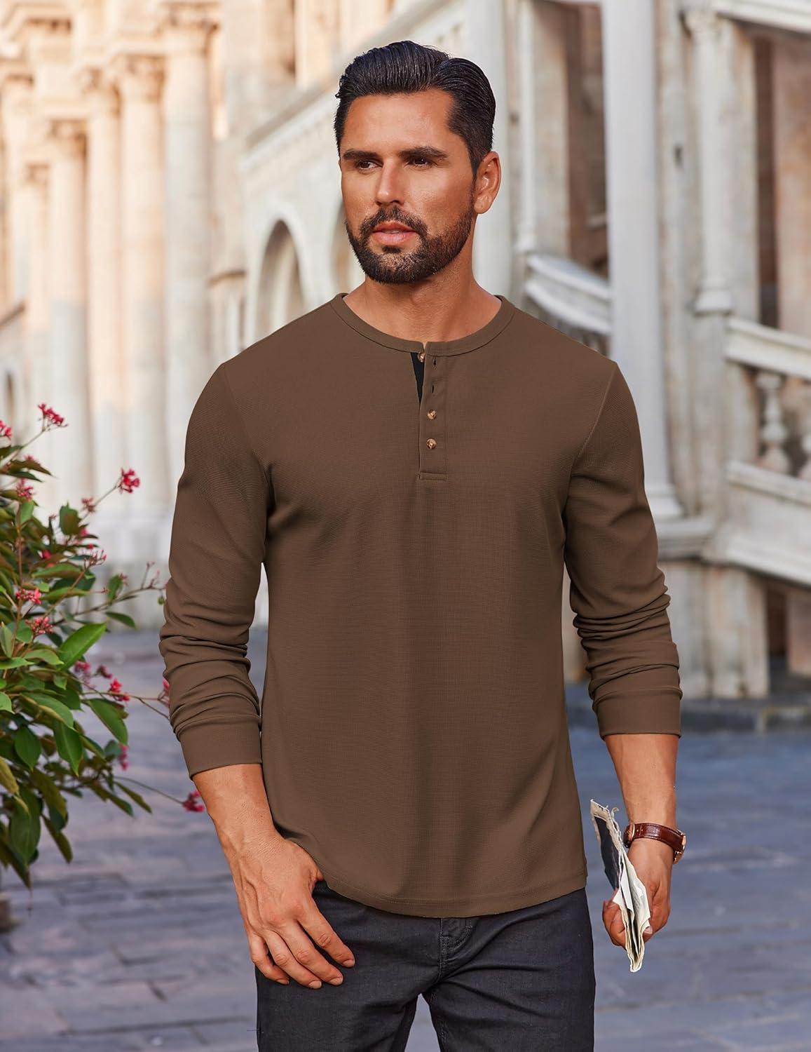 COOFANDY Mens Waffle Henley Shirts Long Sleeve Casual T-Shirt Basic Lightweight Pullover Tees(Brown)