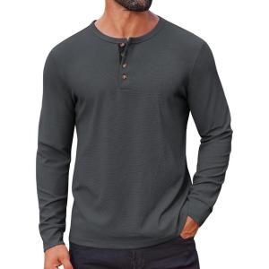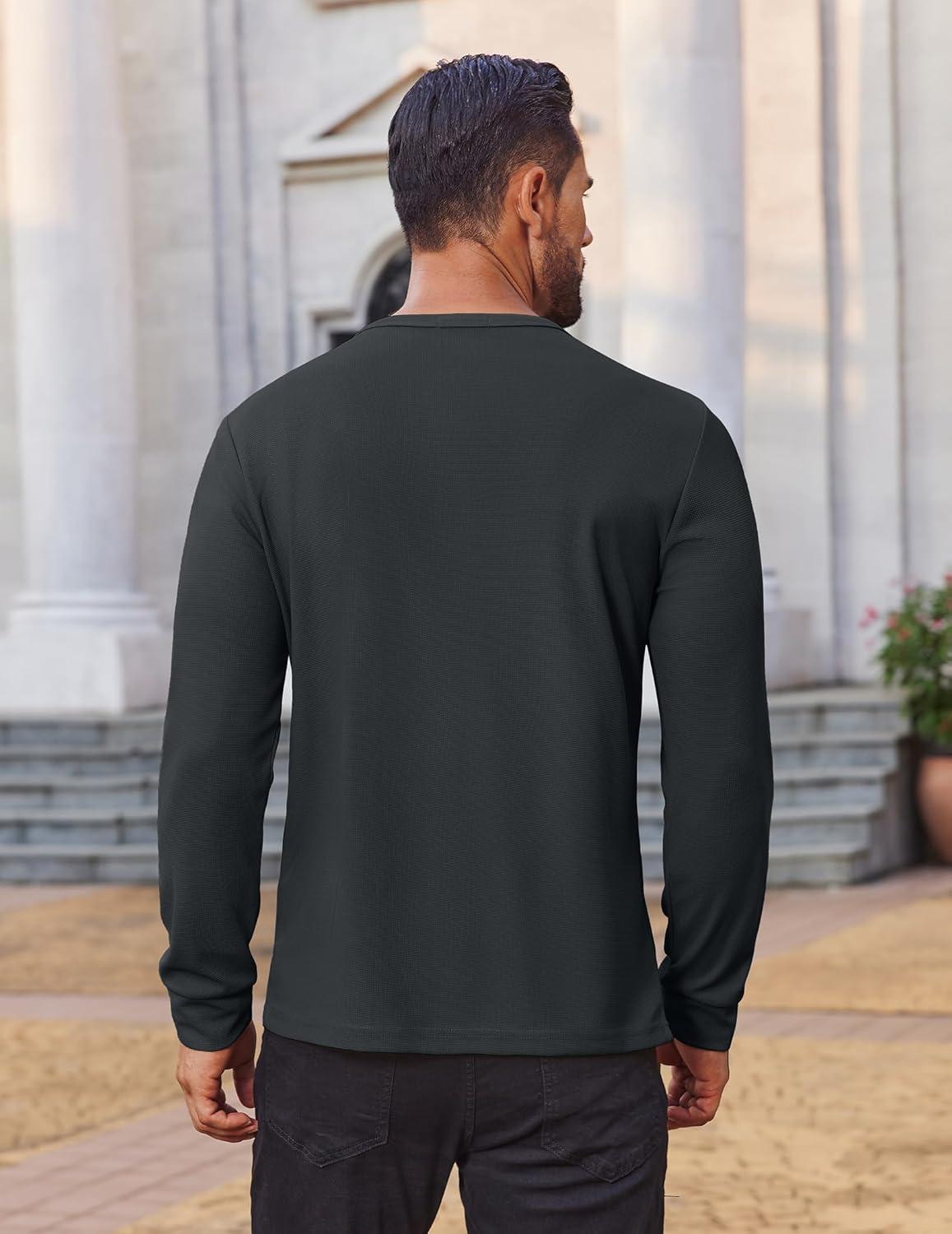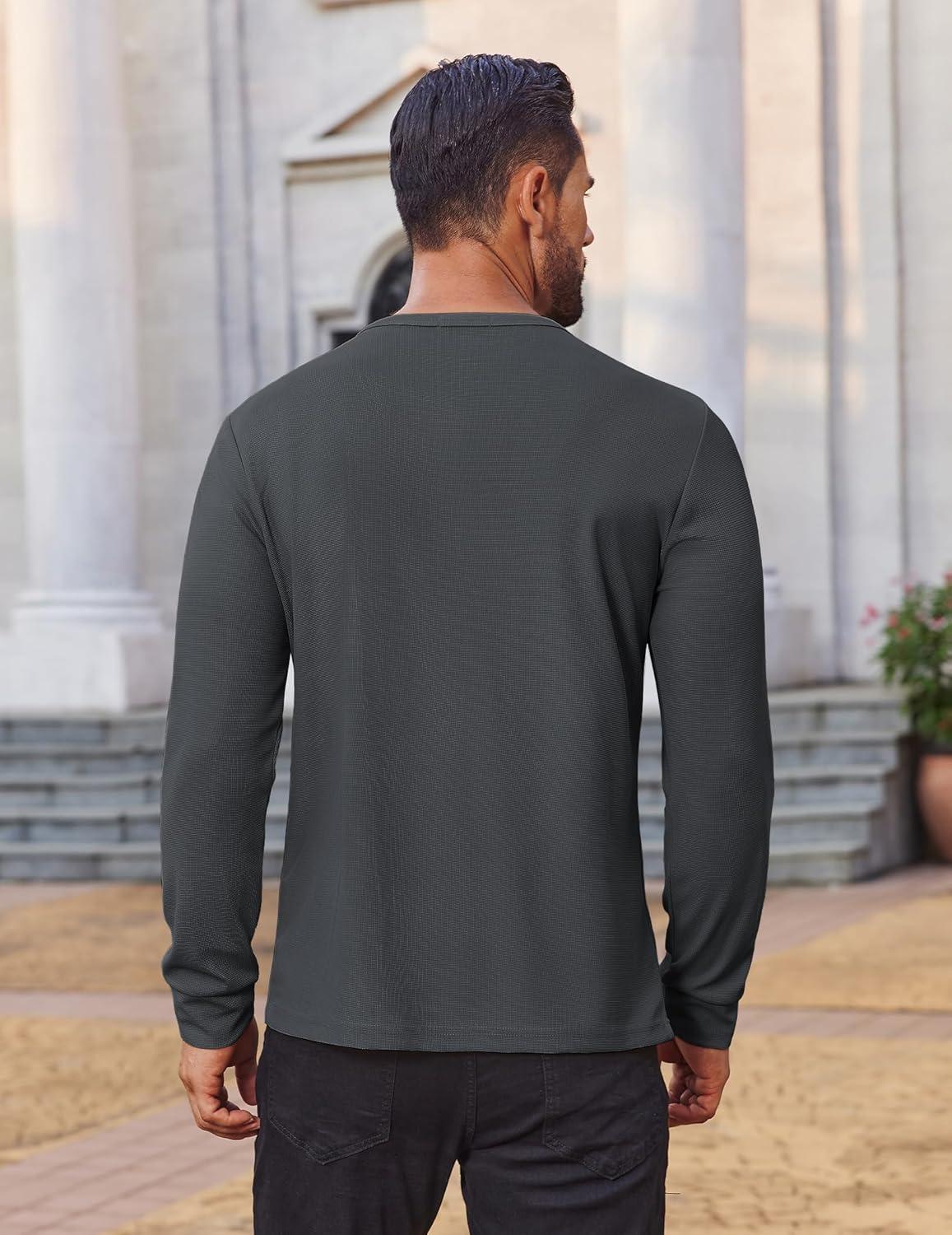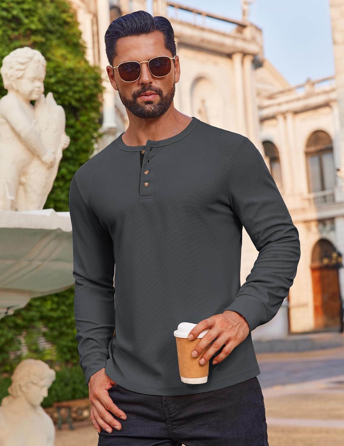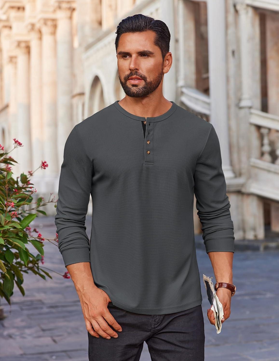 COOFANDY Mens Waffle Henley Shirts Long Sleeve Casual T-Shirt Basic Lightweight Pullover Tees(Dark Gray)