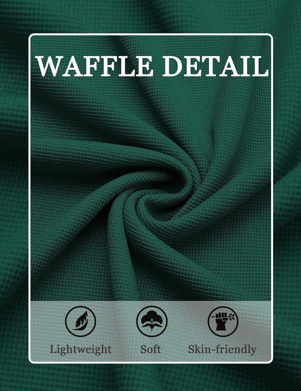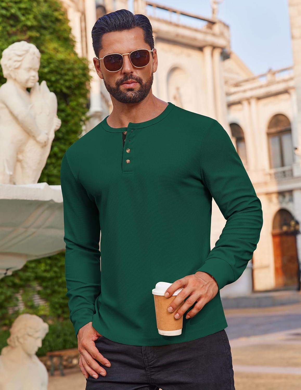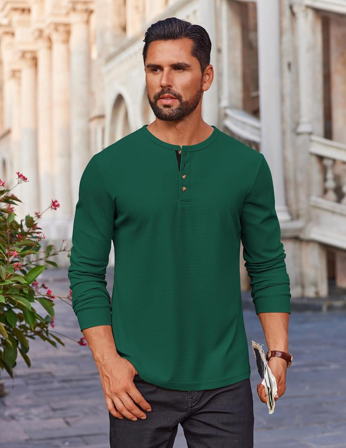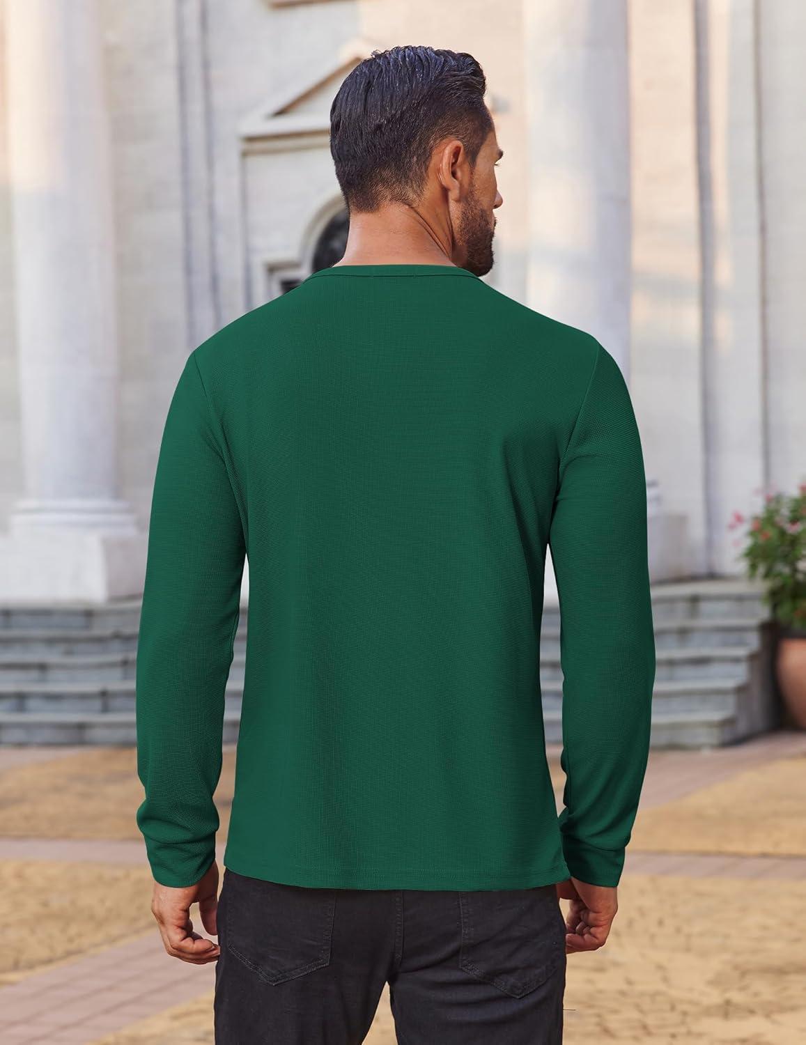 COOFANDY Mens Waffle Henley Shirts Long Sleeve Casual T-Shirt Basic Lightweight Pullover Tees(Green)