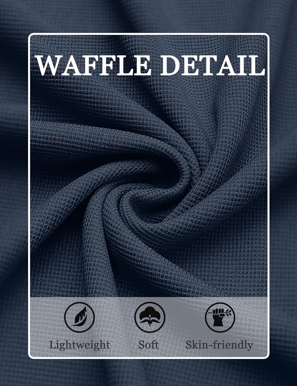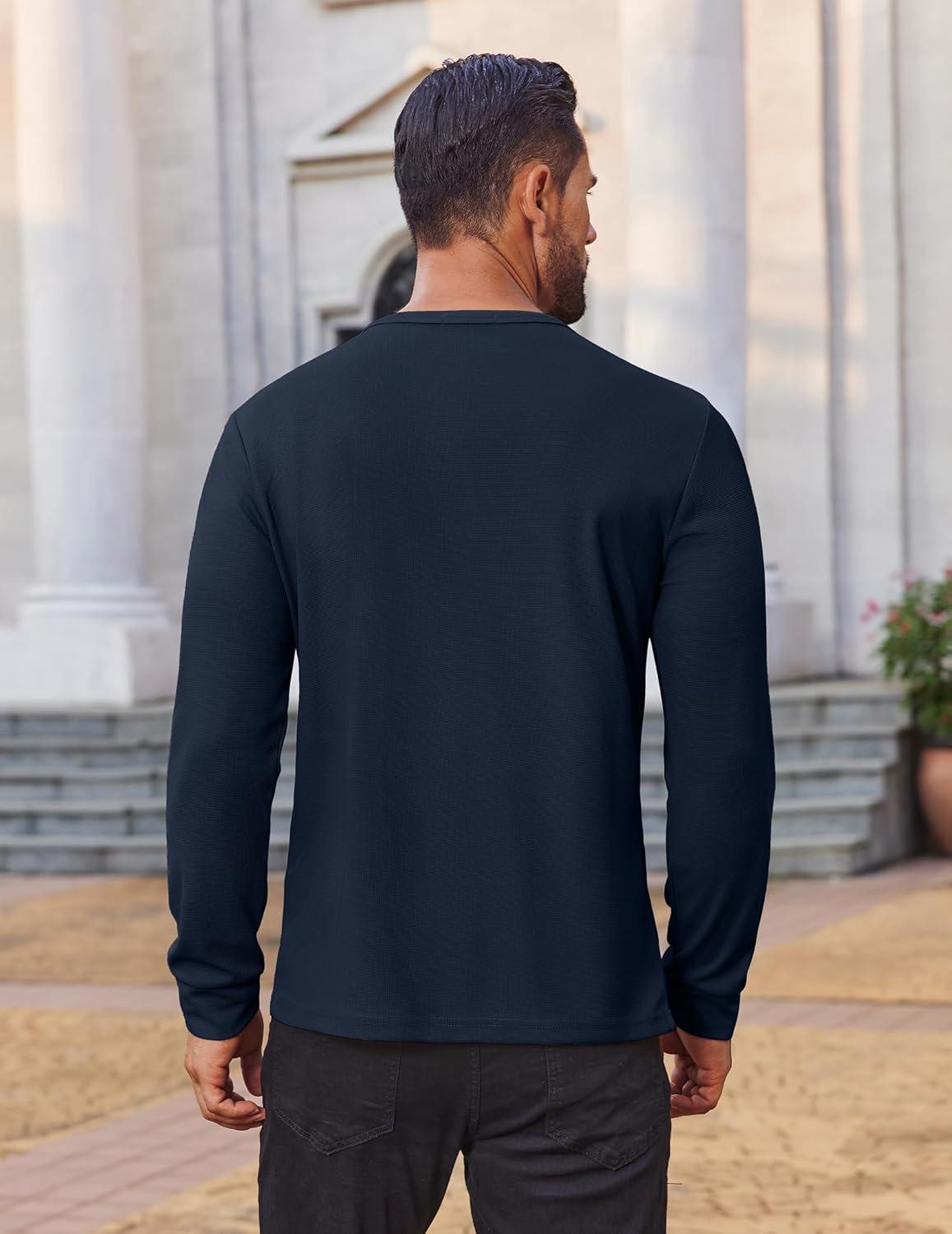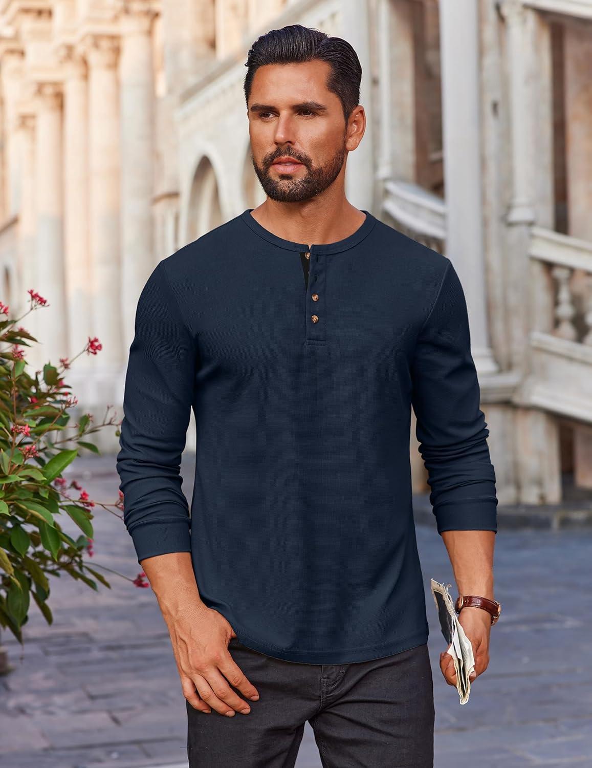 COOFANDY Mens Waffle Henley Shirts Long Sleeve Casual T-Shirt Basic Lightweight Pullover Tees(Navy Blue)
