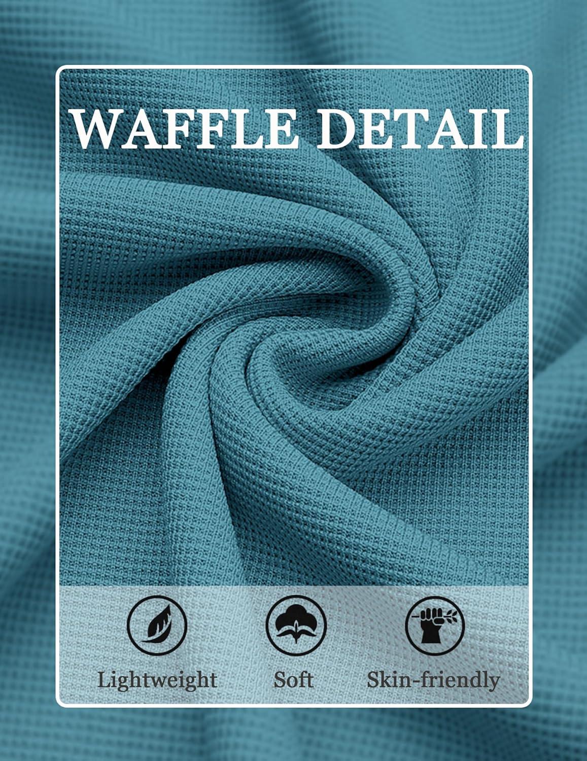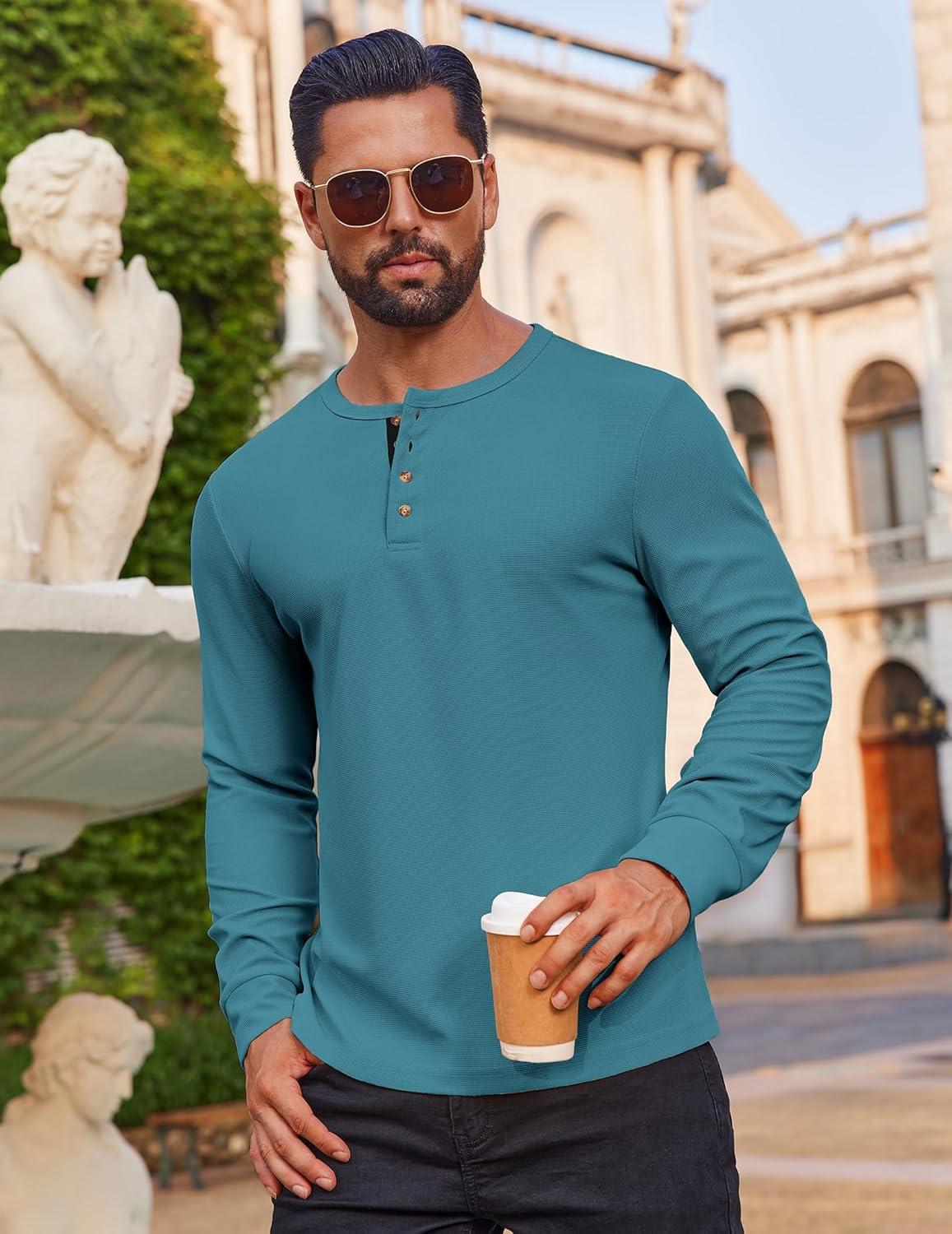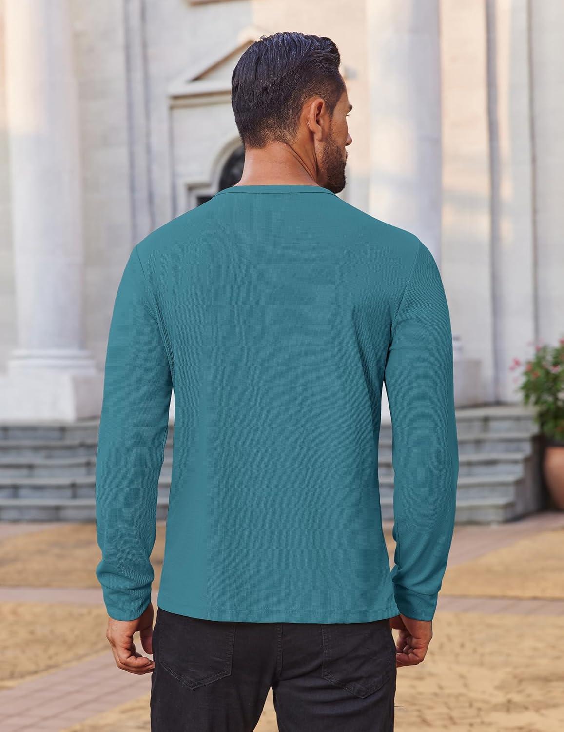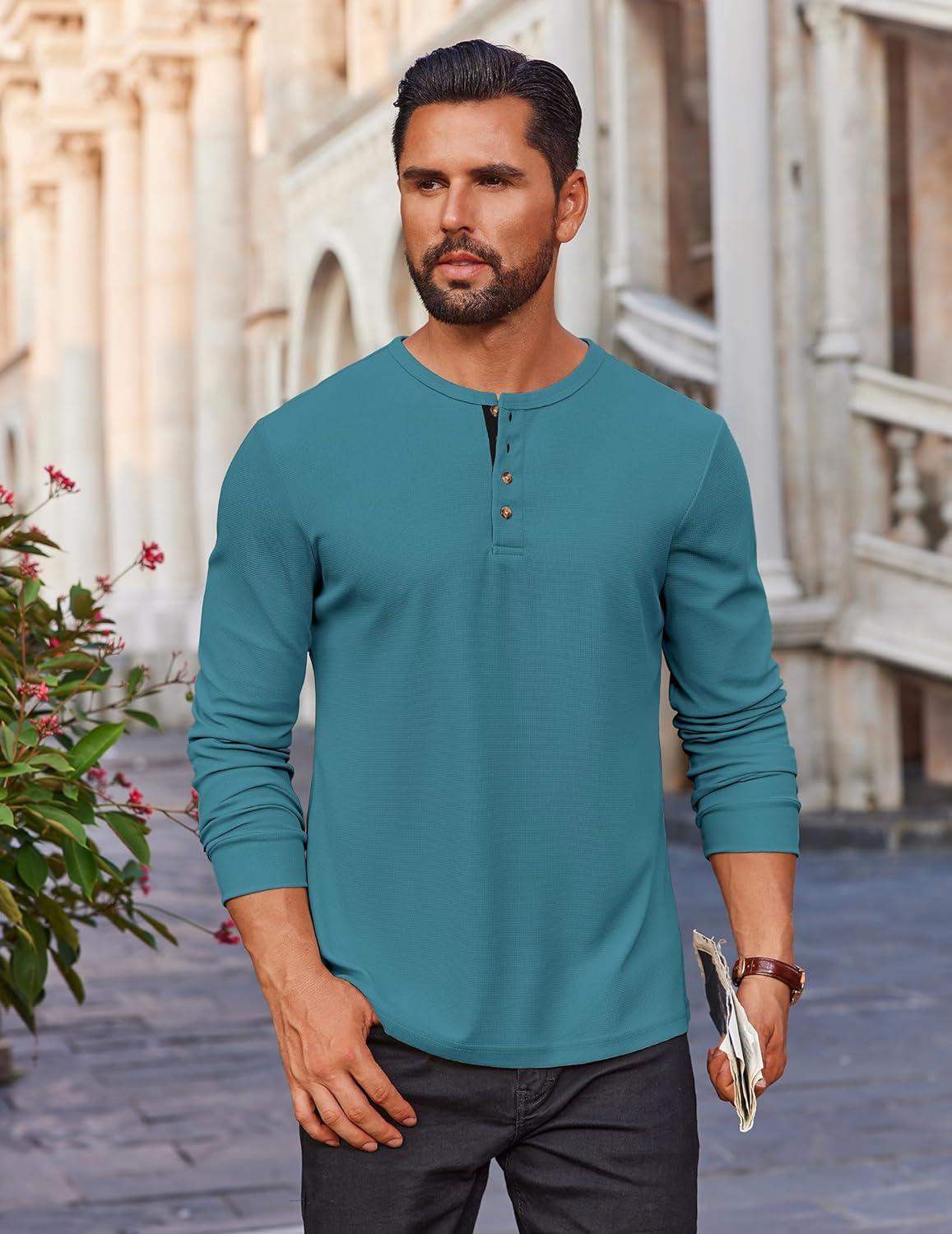 COOFANDY Mens Waffle Henley Shirts Long Sleeve Casual T-Shirt Basic Lightweight Pullover Tees(Peacock Blue)