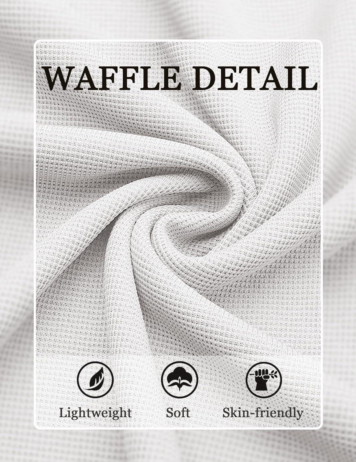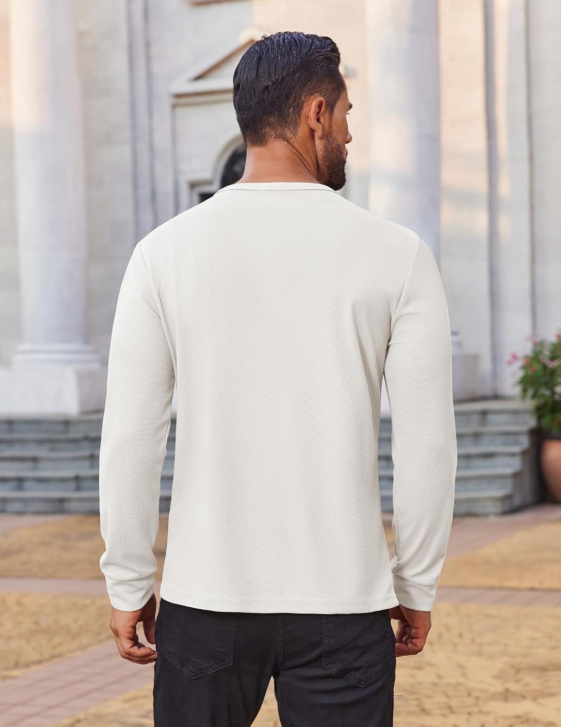COOFANDY Mens Waffle Henley Shirts Long Sleeve Casual T-Shirt Basic Lightweight Pullover Tees(White)