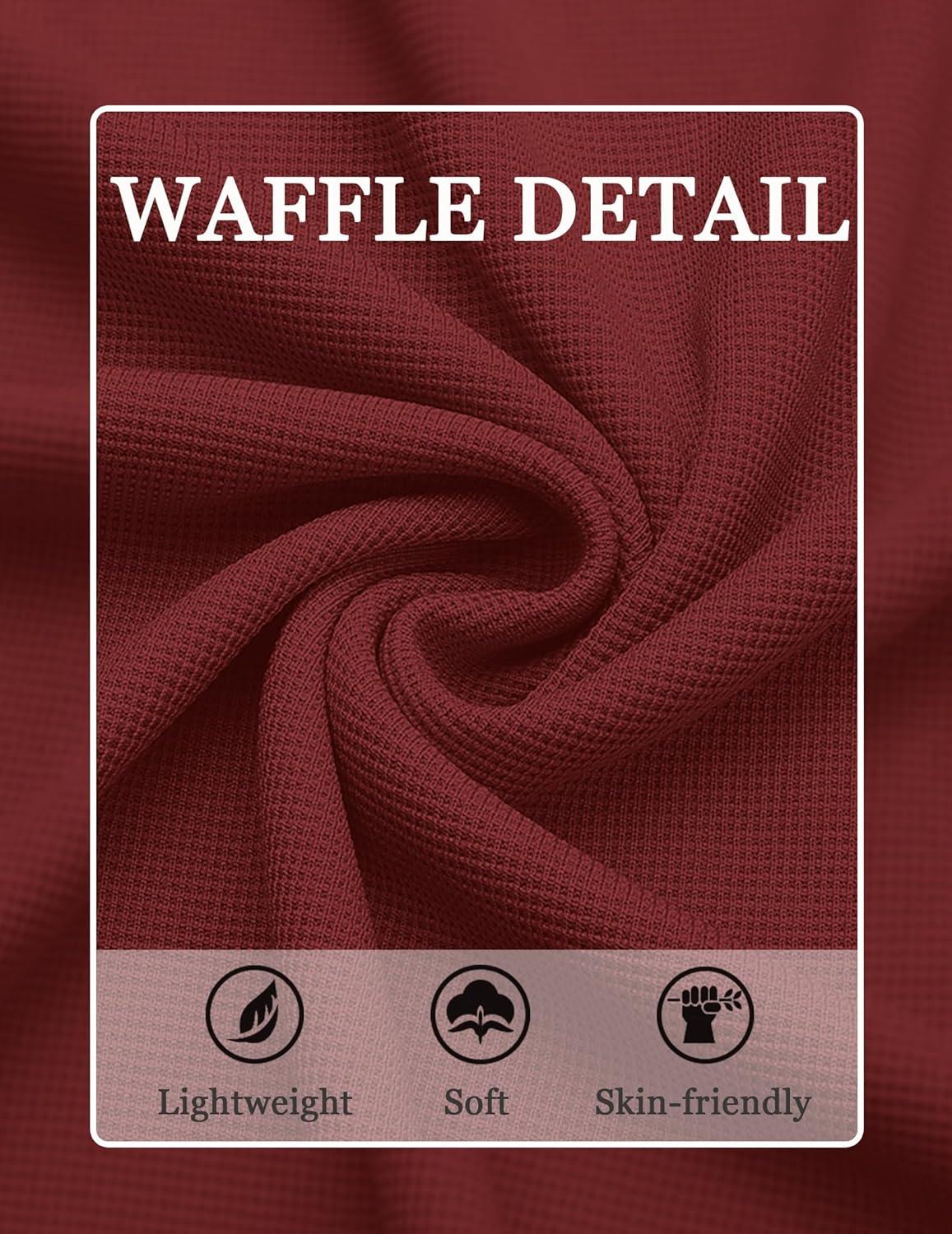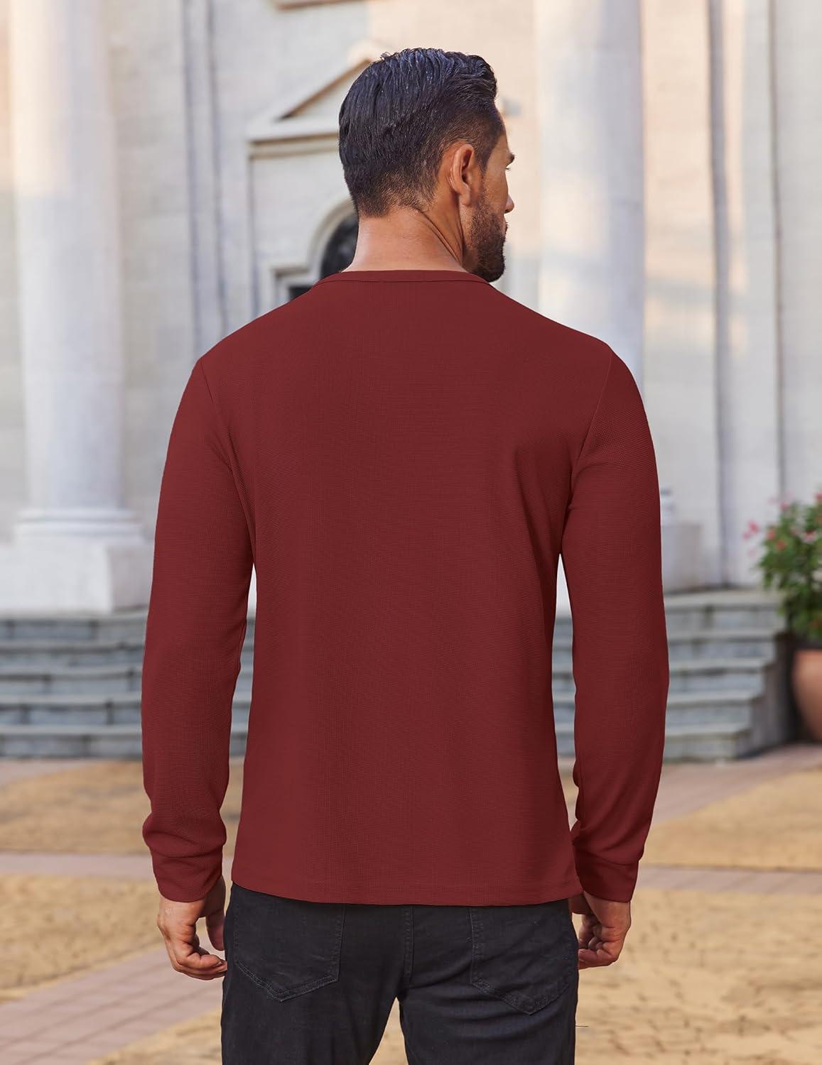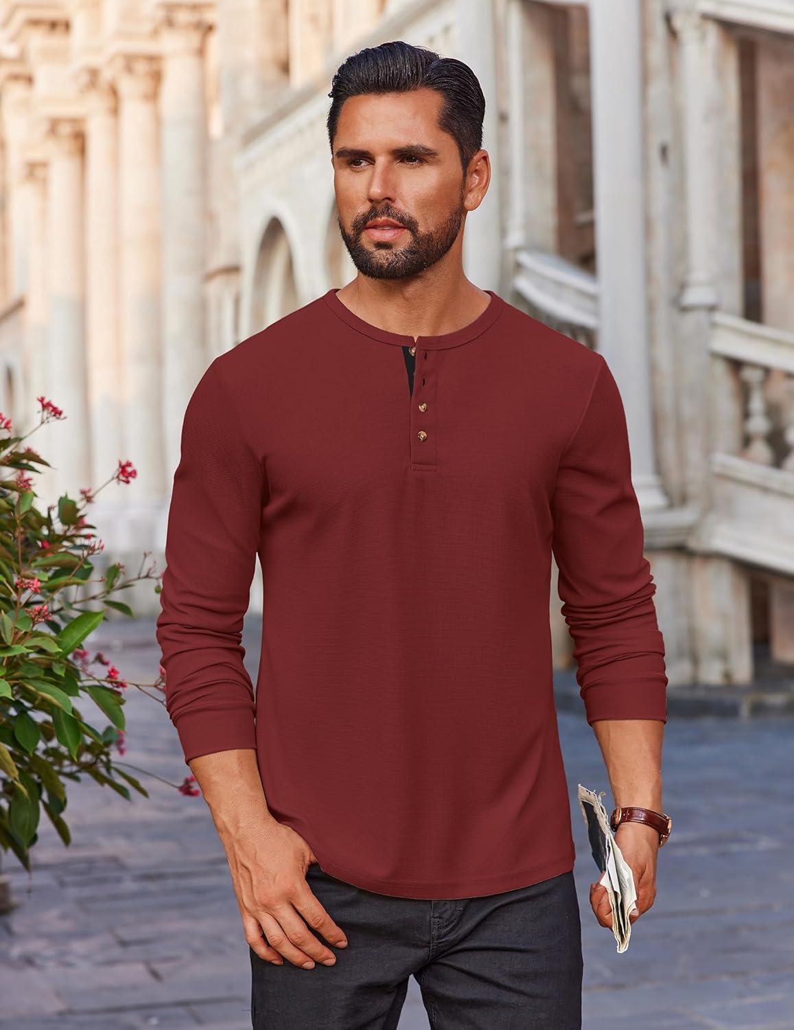 COOFANDY Mens Waffle Henley Shirts Long Sleeve Casual T-Shirt Basic Lightweight Pullover Tees(Wine Red)