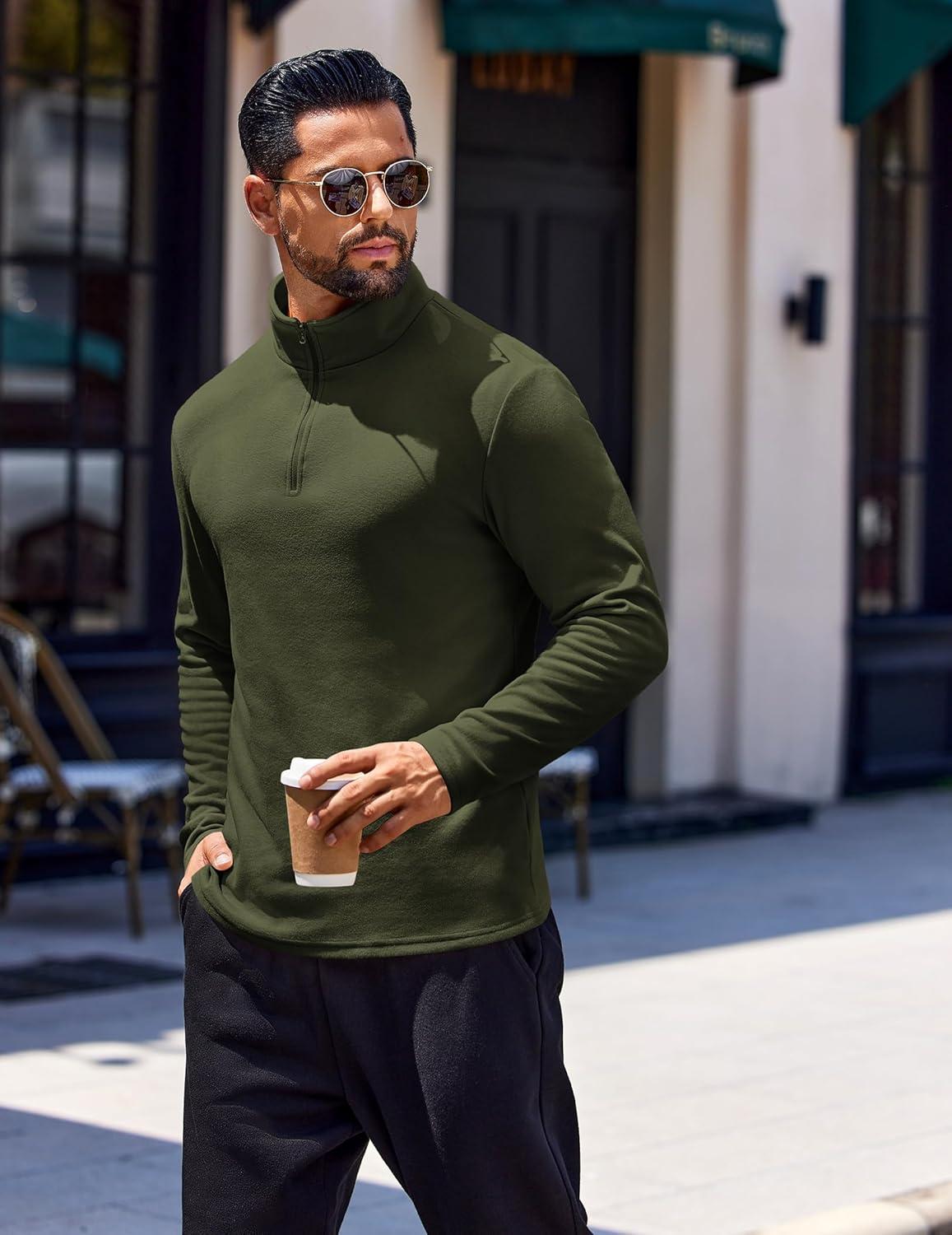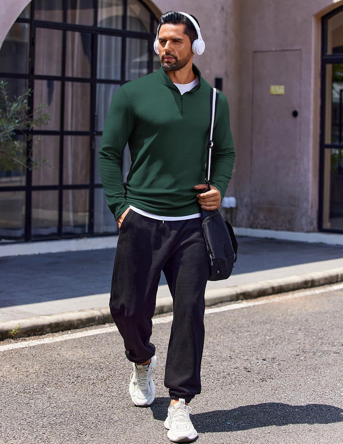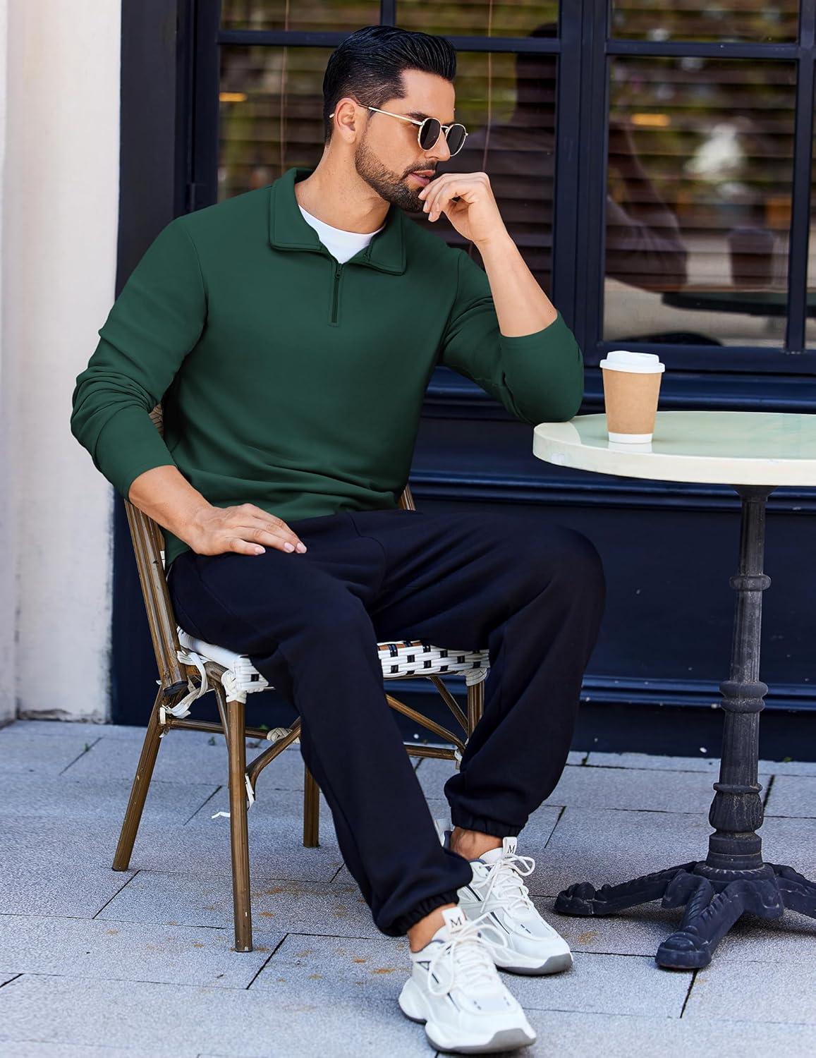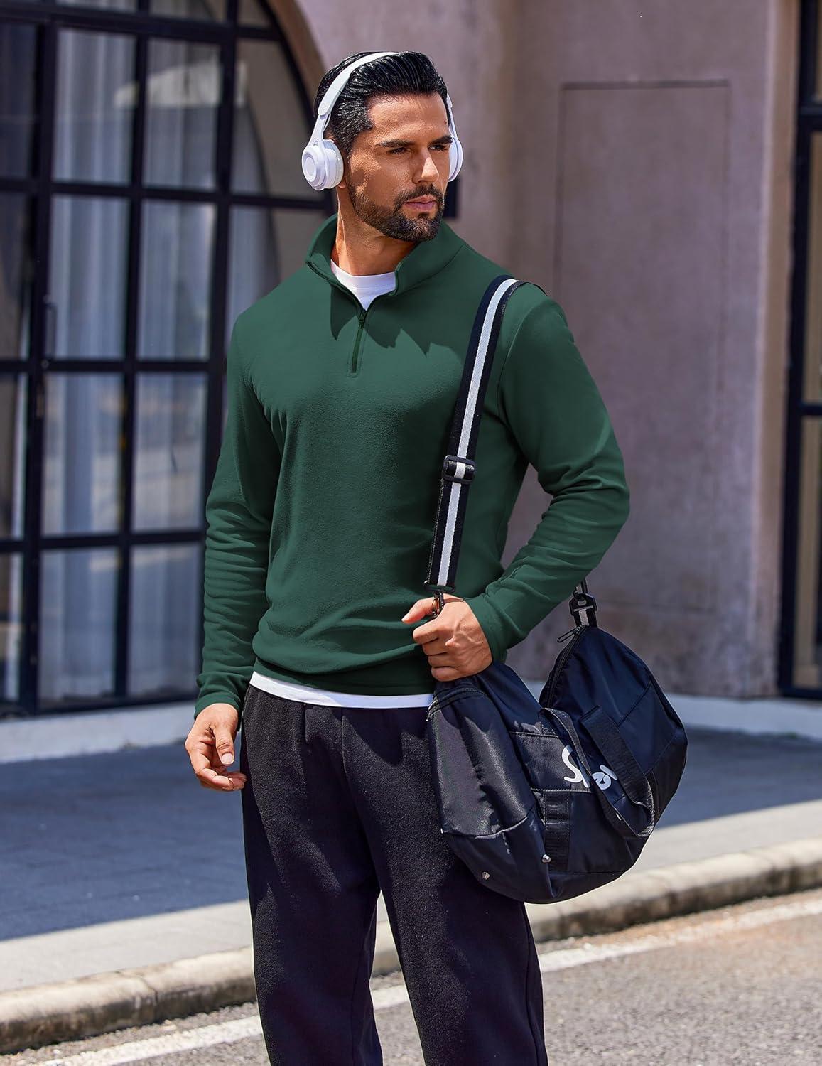 COOFANDY Quarter Zip Pullover Men Long Sleeve Sweatshirts for Men Fleece Sweater Fall(Dark Green)