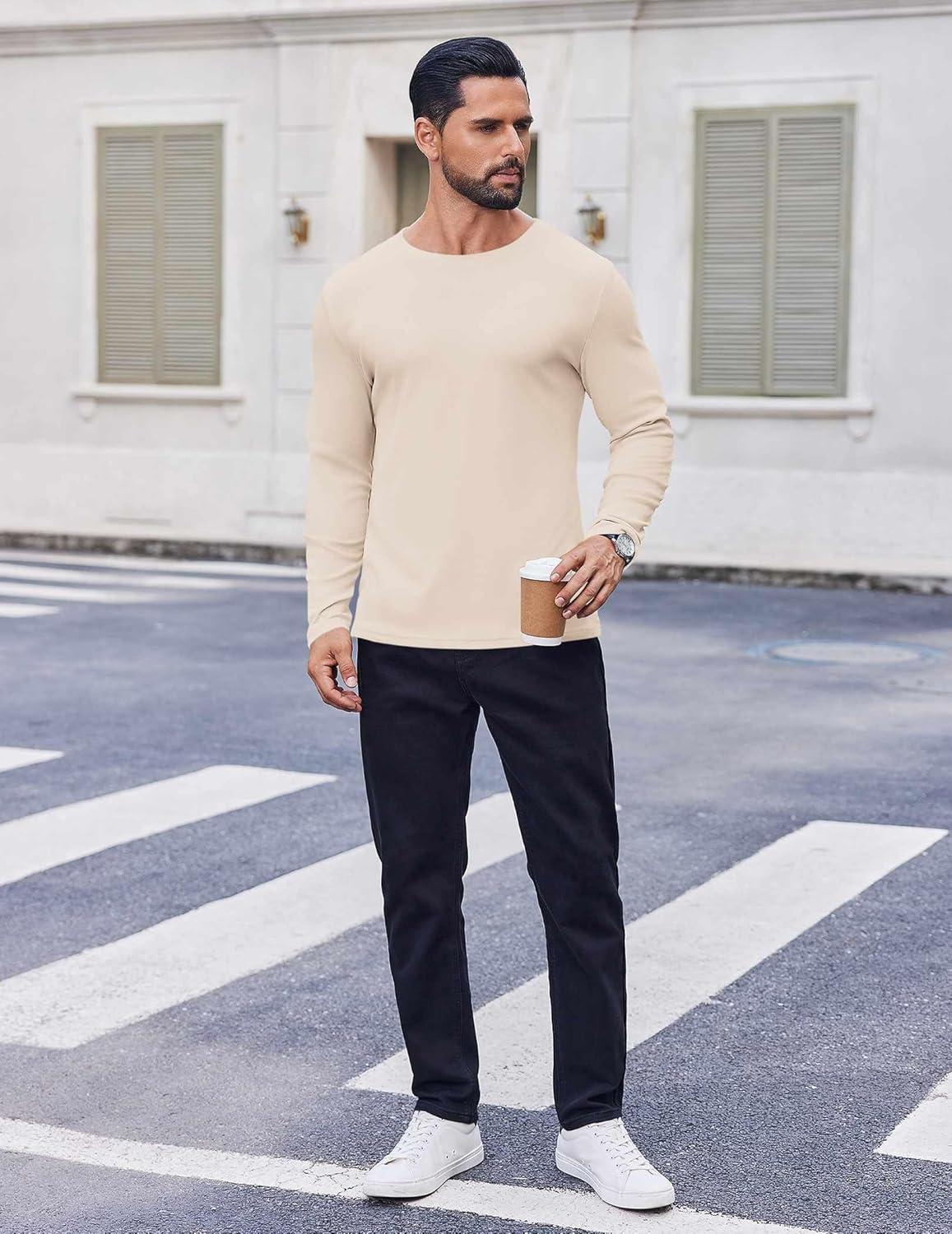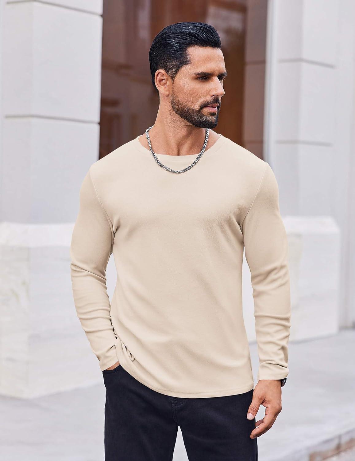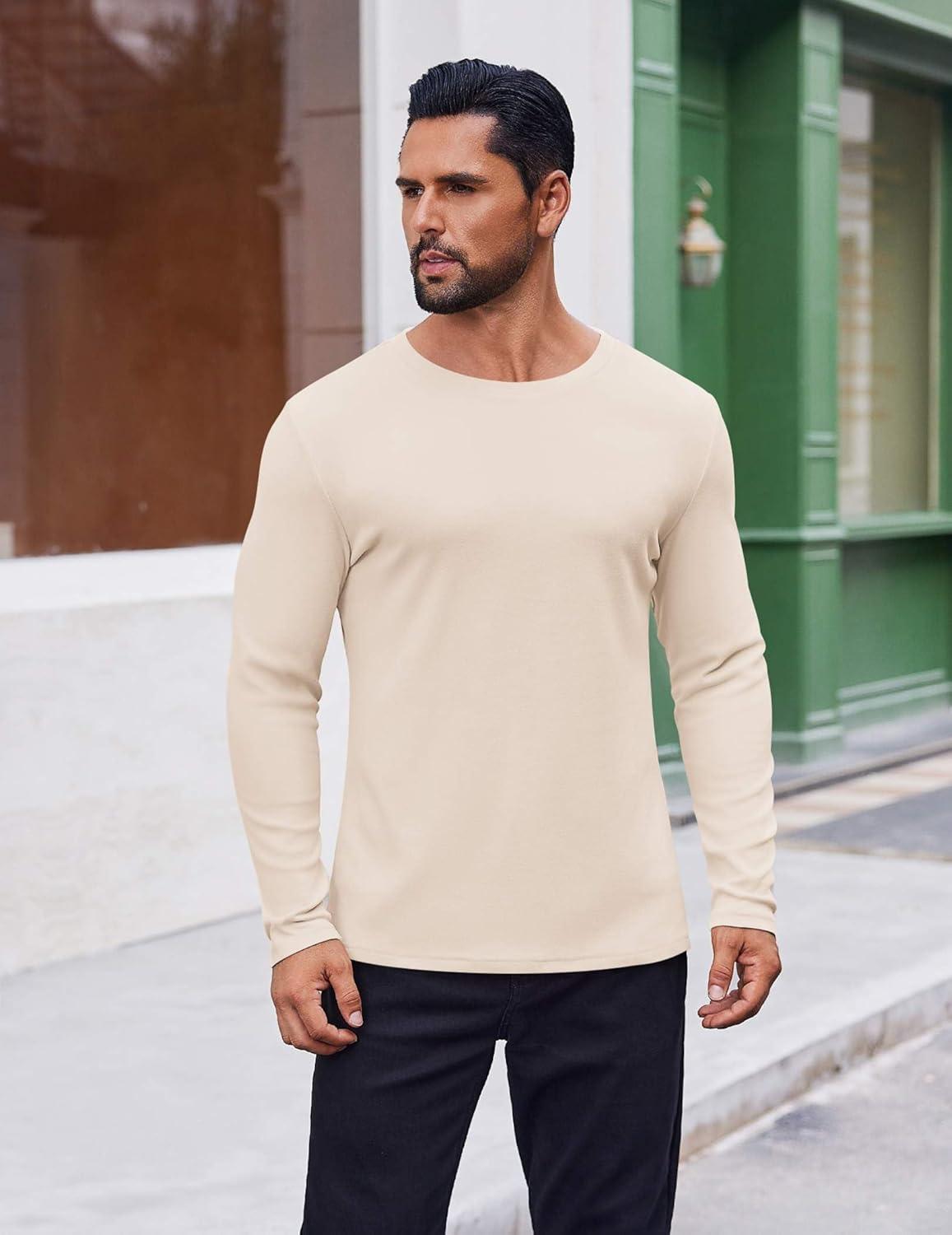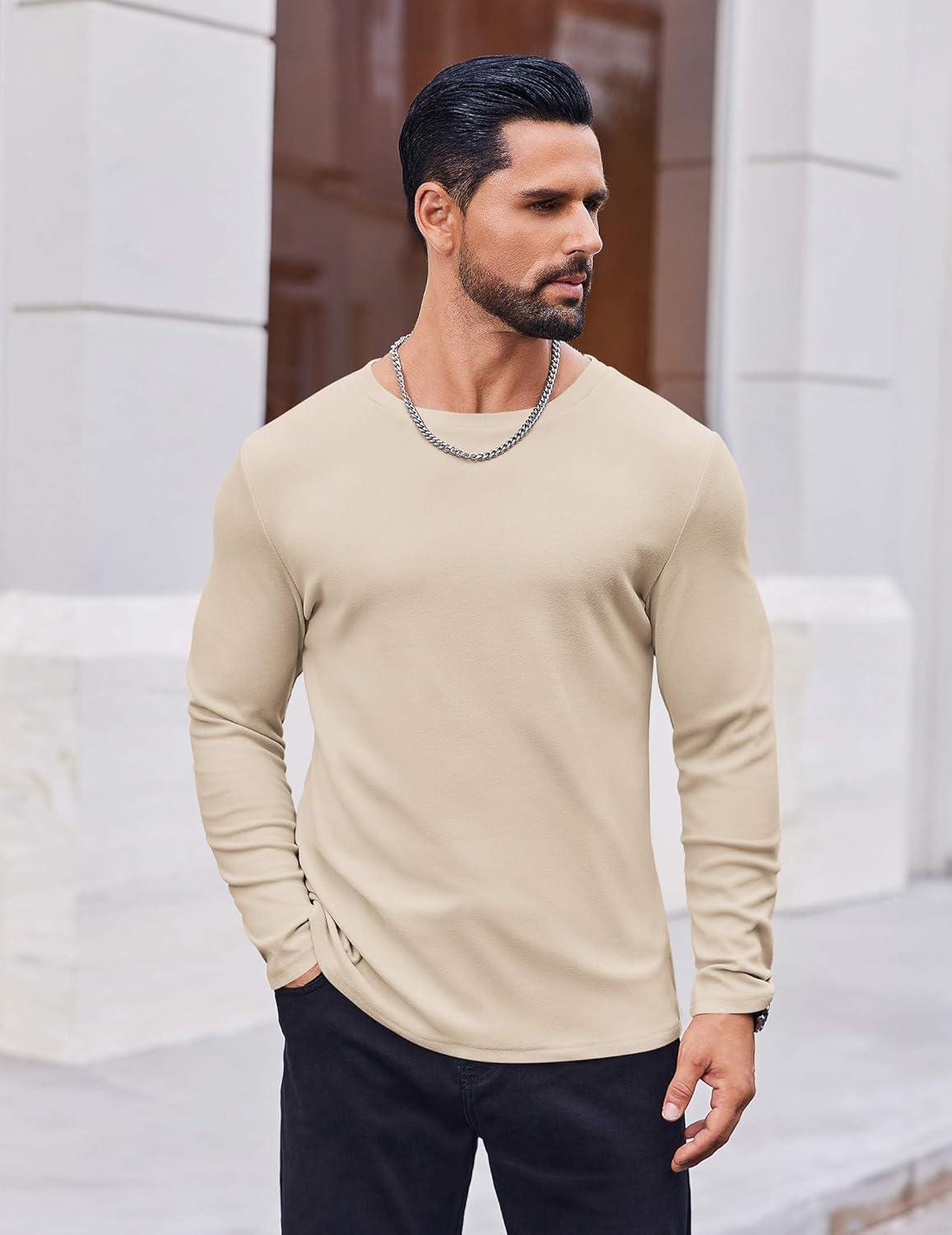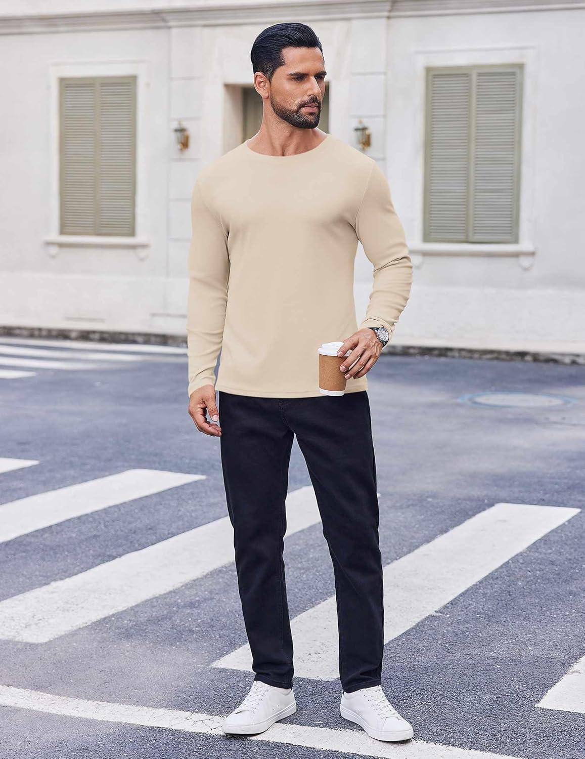 COOFANDY Thermal Shirts for Men Heavyweight Long Sleeve T Shirt Casual Basic Shirts Stretch Crew Neck Undershirts(Beige)