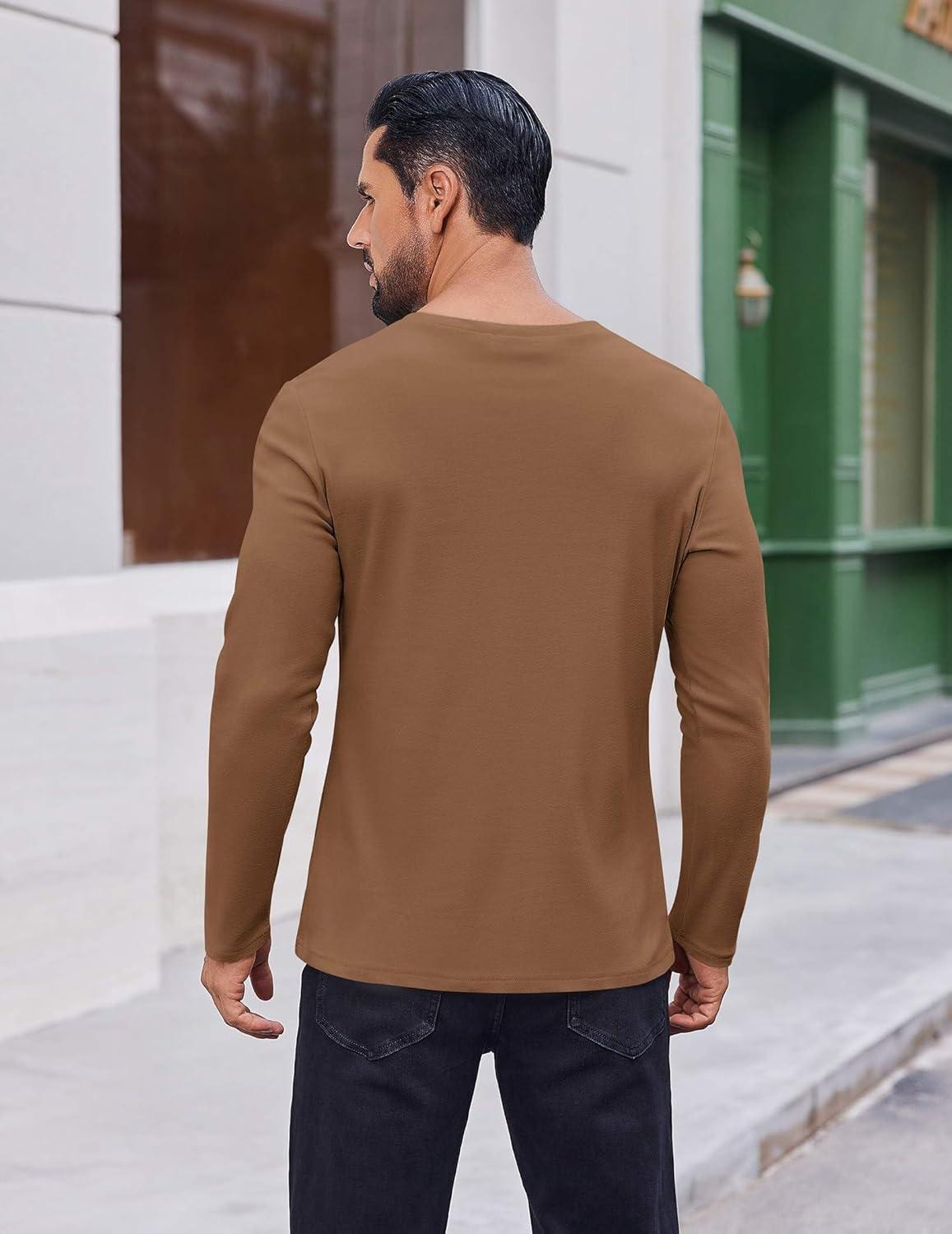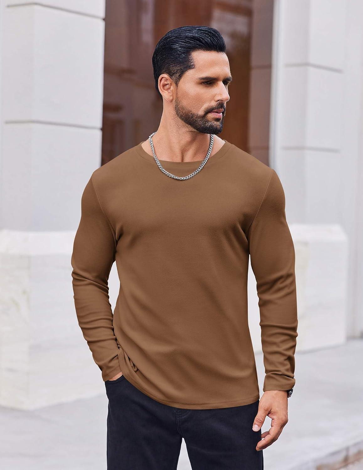 COOFANDY Thermal Shirts for Men Heavyweight Long Sleeve T Shirt Casual Basic Shirts Stretch Crew Neck Undershirts(Brown)