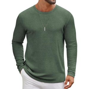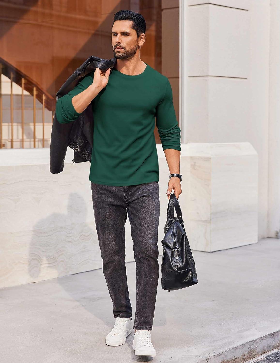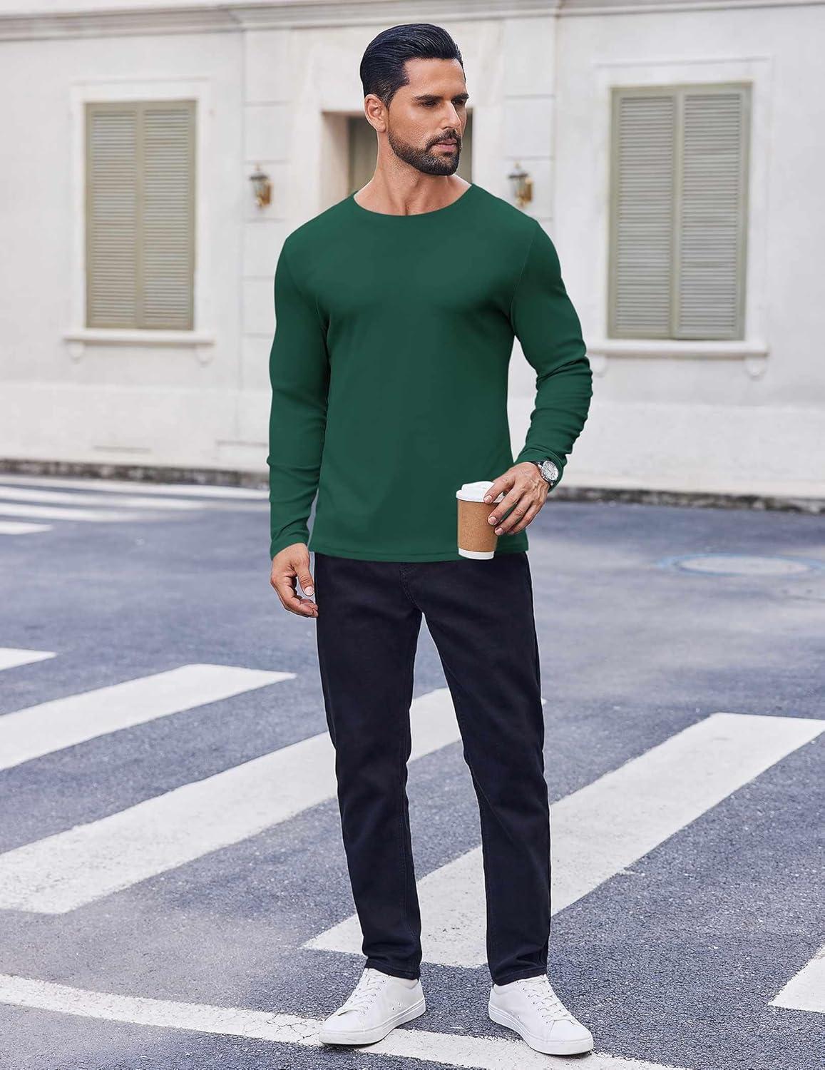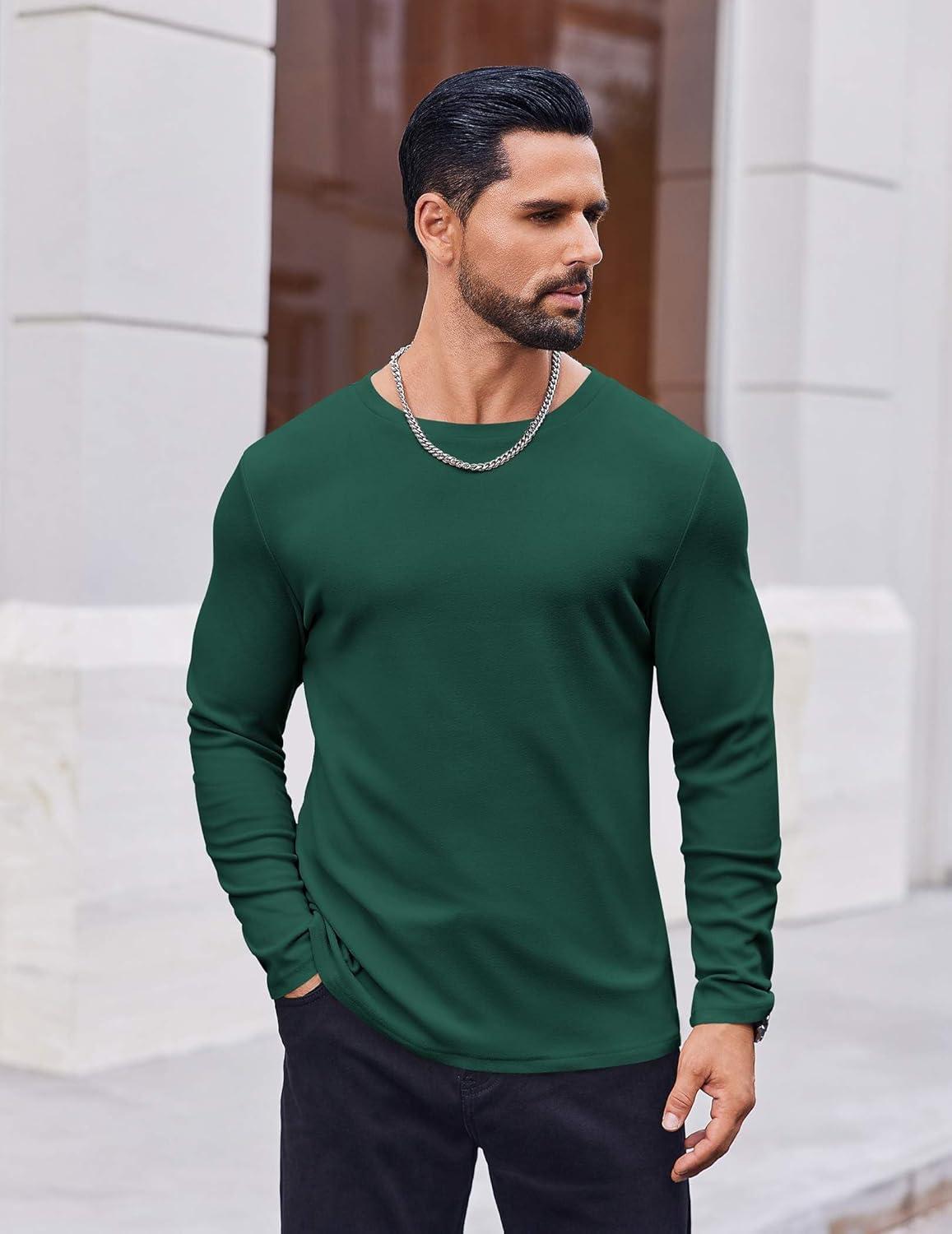 COOFANDY Thermal Shirts for Men Heavyweight Long Sleeve T Shirt Casual Basic Shirts Stretch Crew Neck Undershirts(Green)