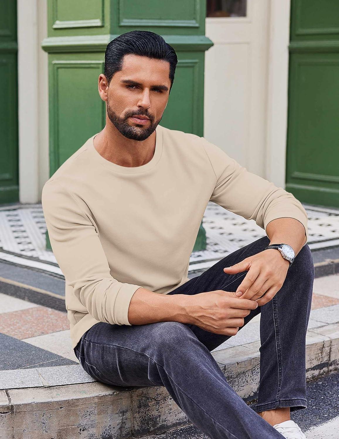 COOFANDY Men’s Long Sleeve Tee Shirts Crew Neck T-Shirt Casual Pullover Basic Tees Soft Stretch Tshirts(Light Apricot)