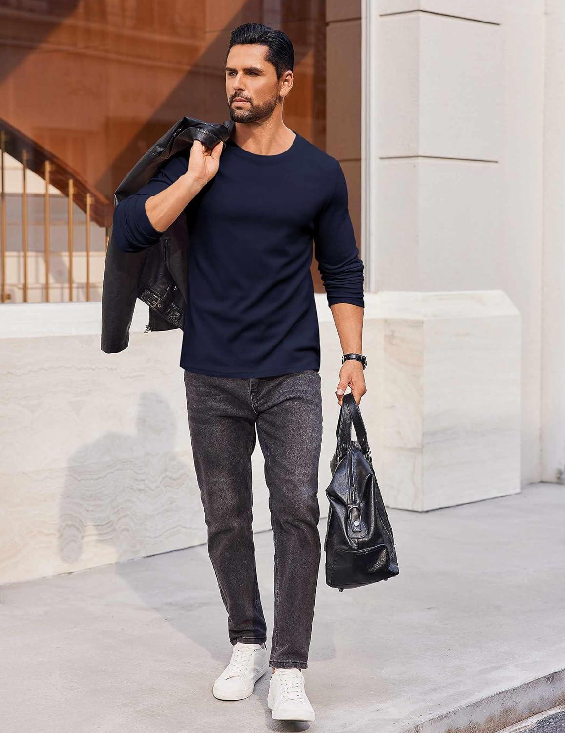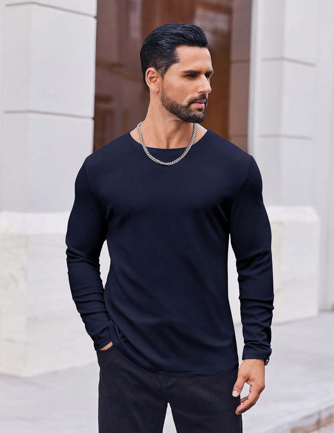 COOFANDY Men’s Long Sleeve Tee Shirts Crew Neck T-Shirt Casual Pullover Basic Tees Soft Stretch Tshirts(Black&navy)