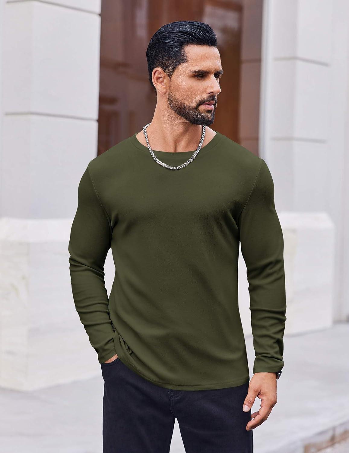 COOFANDY Mens Long Sleeve Tee Shirts Stretch Crew Neck Thermal Shirts Casual T Shirts for Men(Dark Army Green)