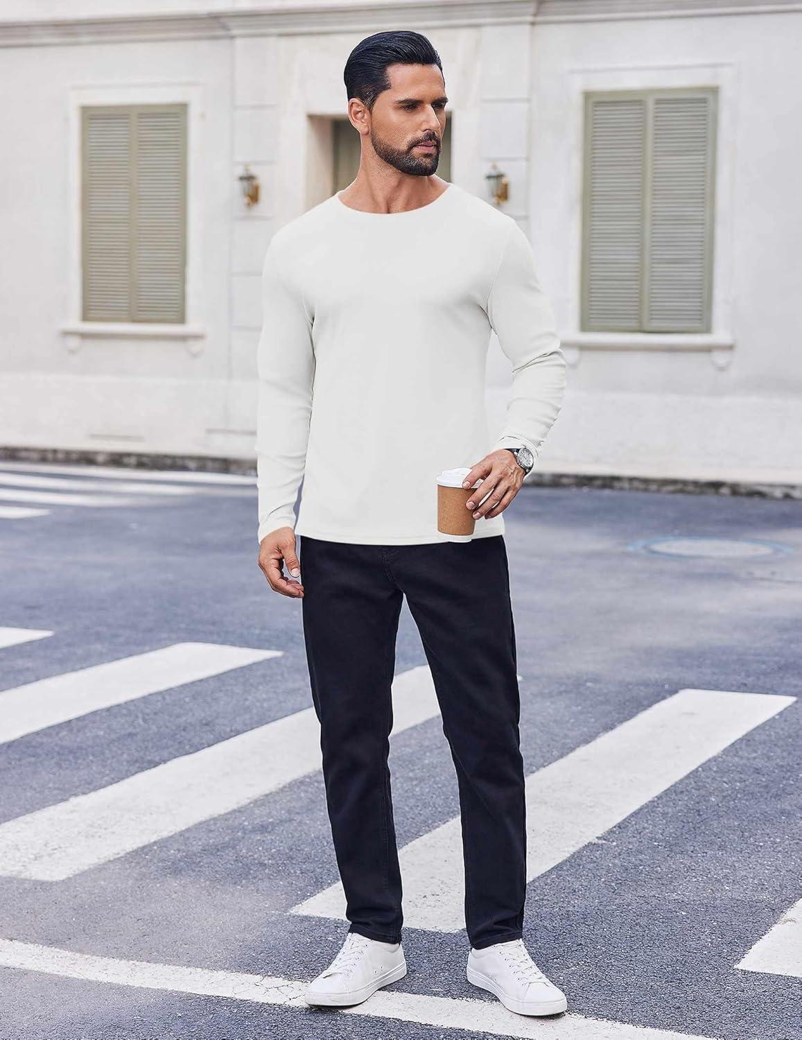 COOFANDY Mens Long Sleeve Tee Shirts Stretch Crew Neck Thermal Shirts Casual T Shirts for Men(A-white)