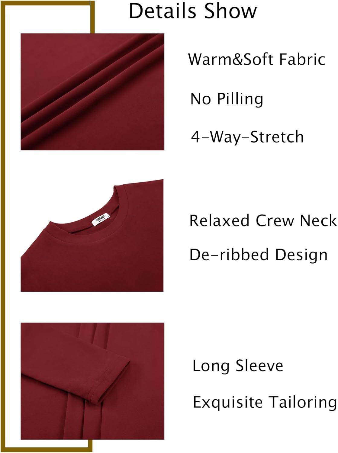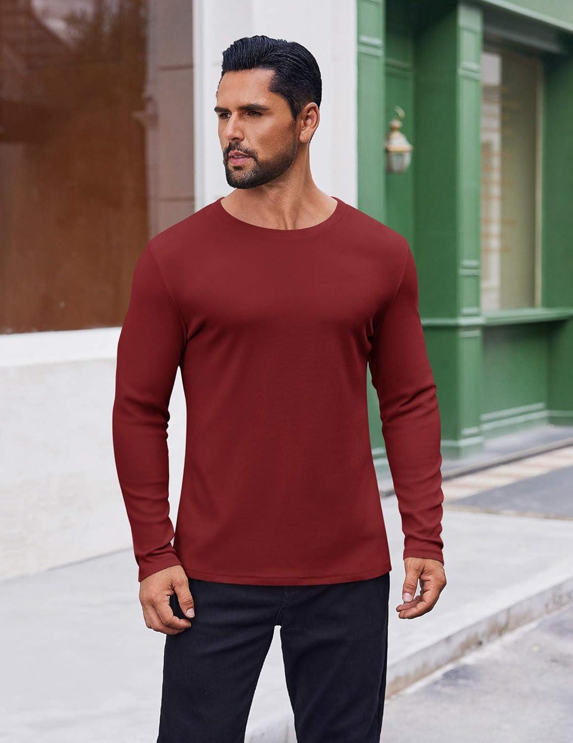 COOFANDY Thermal Shirts for Men Heavyweight Long Sleeve T Shirt Casual Basic Shirts Stretch Crew Neck Undershirts(Wine Red)