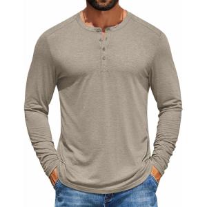 COOFANDY Men’s Henley Shirts Long Sleeve Lightweight Button T-Shirt Casual Basic Tee Top(Khaki)
