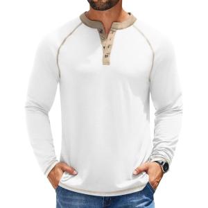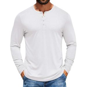 COOFANDY Men’s Henley Shirts Long Sleeve Lightweight Button T-Shirt Casual Basic Tee Top(White)
