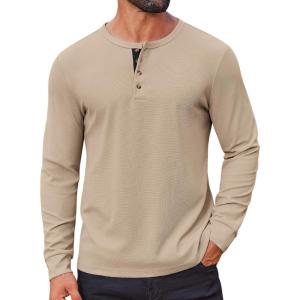 COOFANDY Mens Waffle Henley Shirts Long Sleeve Casual T-Shirt Basic Lightweight Pullover Tees(Khaki)