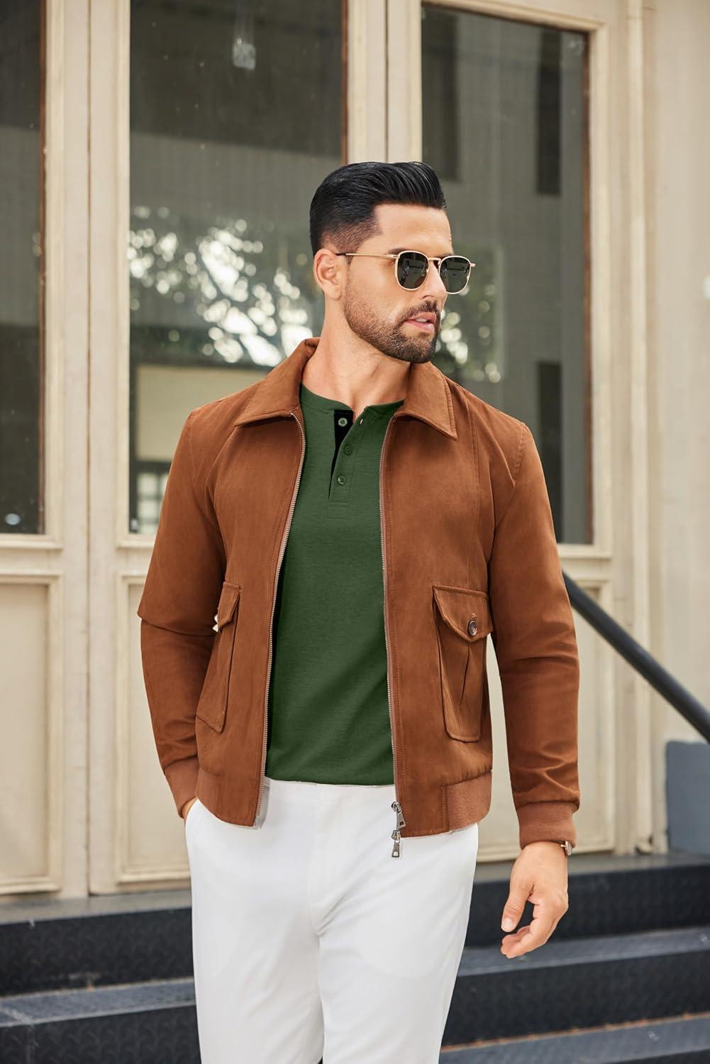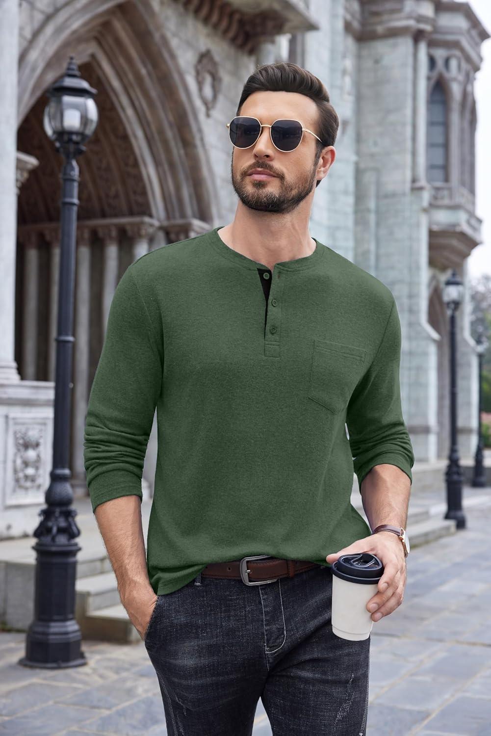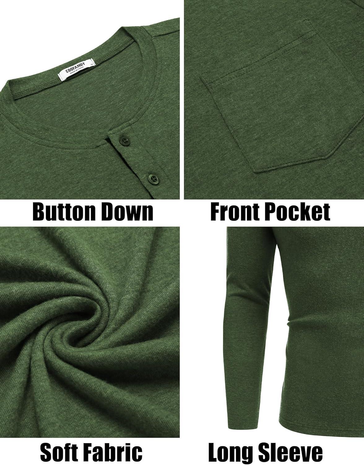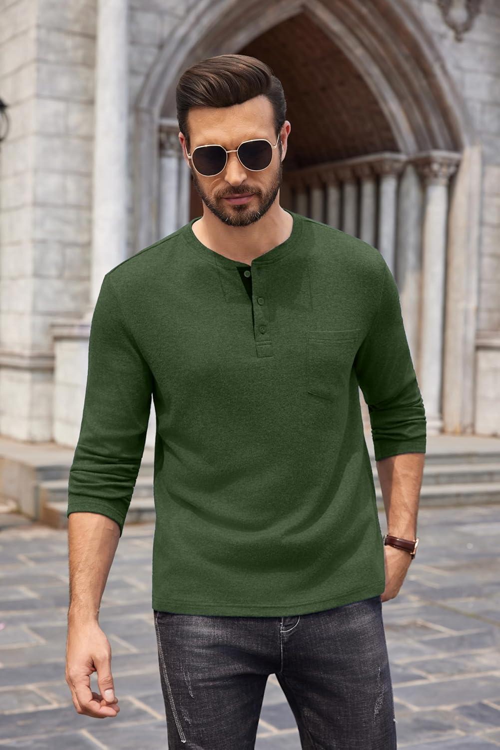 COOFANDY Men Long Sleeve Henley Shirs Casual Basic T Shirts Soild Button Tees with Pockets(Green)