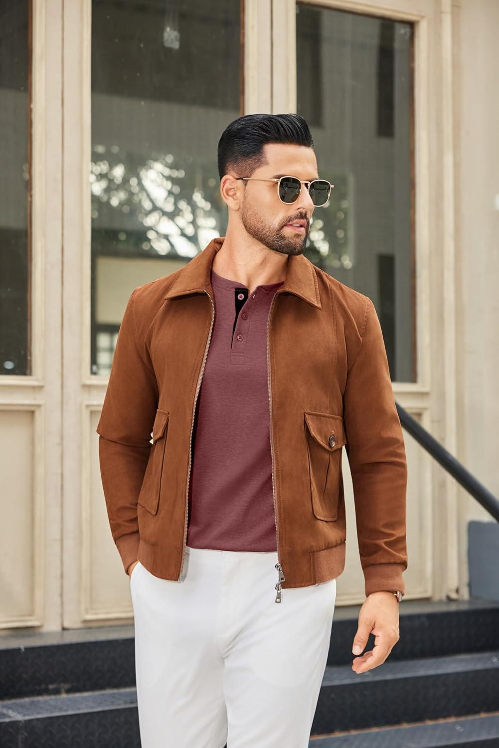 COOFANDY Men Long Sleeve Henley Shirs Casual Basic T Shirts Soild Button Tees with Pockets(Khaki)