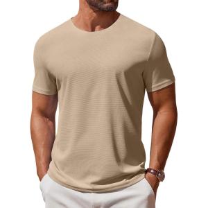 COOFANDY Men’s T Shirt Short Sleeve Crew Neck T-Shirt Casual Summer Classic Basic Tee Shirts(Light Khaki)