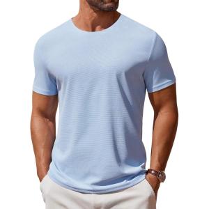 COOFANDY Men’s T Shirt Short Sleeve Crew Neck T-Shirt Casual Summer Classic Basic Tee Shirts(Light Blue)