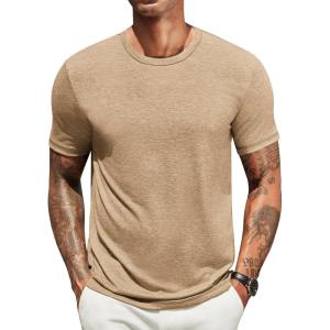 COOFANDY Men’s T Shirt Short Sleeve Crew Neck T-Shirt Casual Summer Classic Basic Tee Shirts(Khaki)