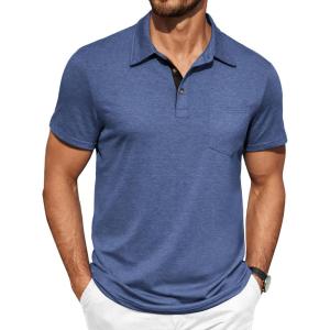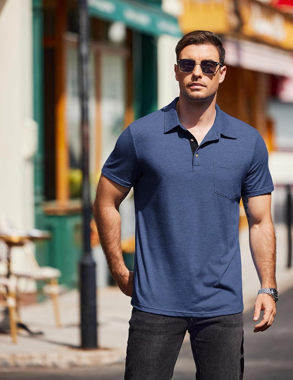 COOFANDY Men Short Sleeve Polo Shirt Casual Summer Collar Shirts Dress Button Polo T Shirt Classic Golf Shirts(Blue)