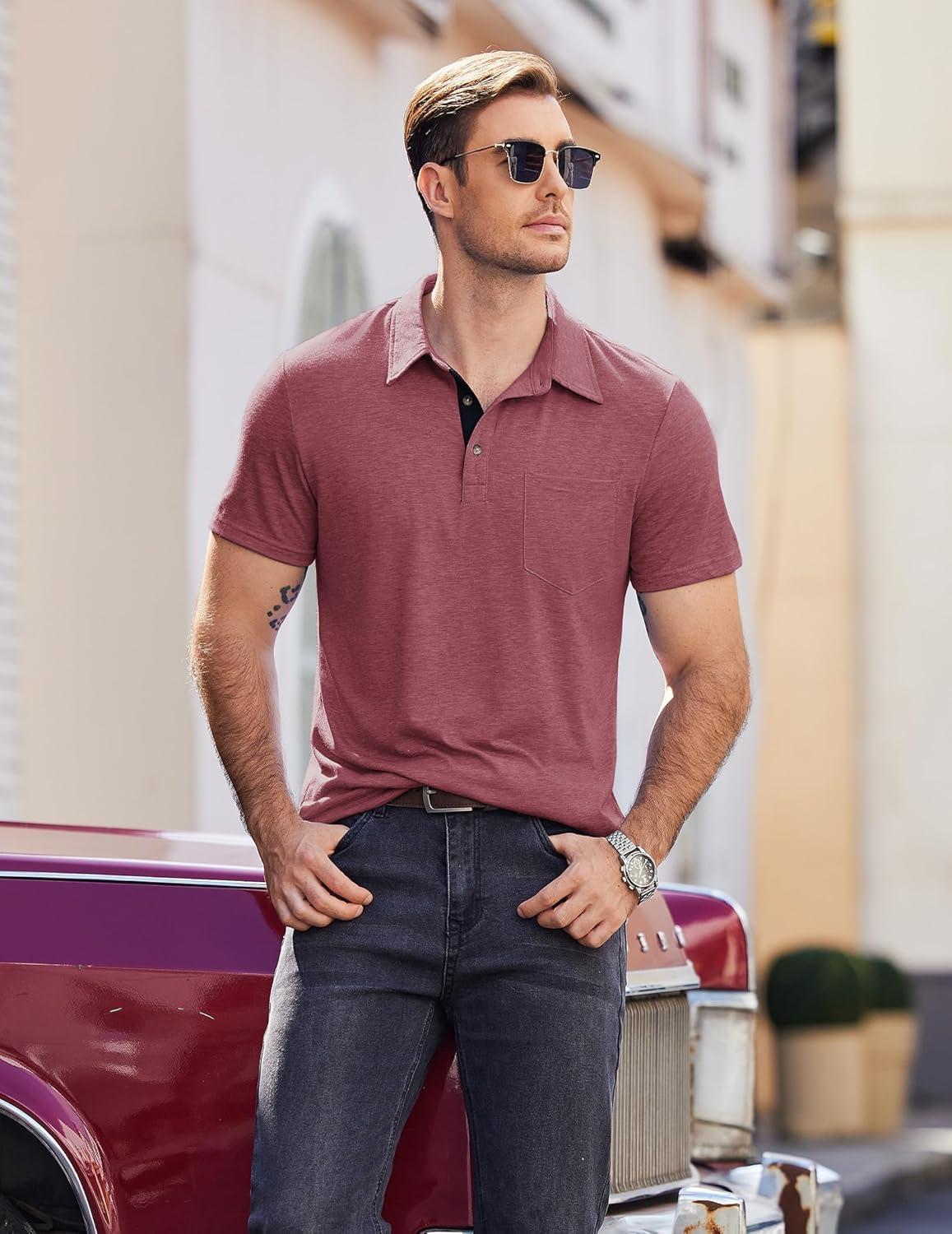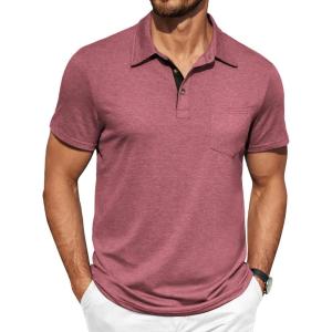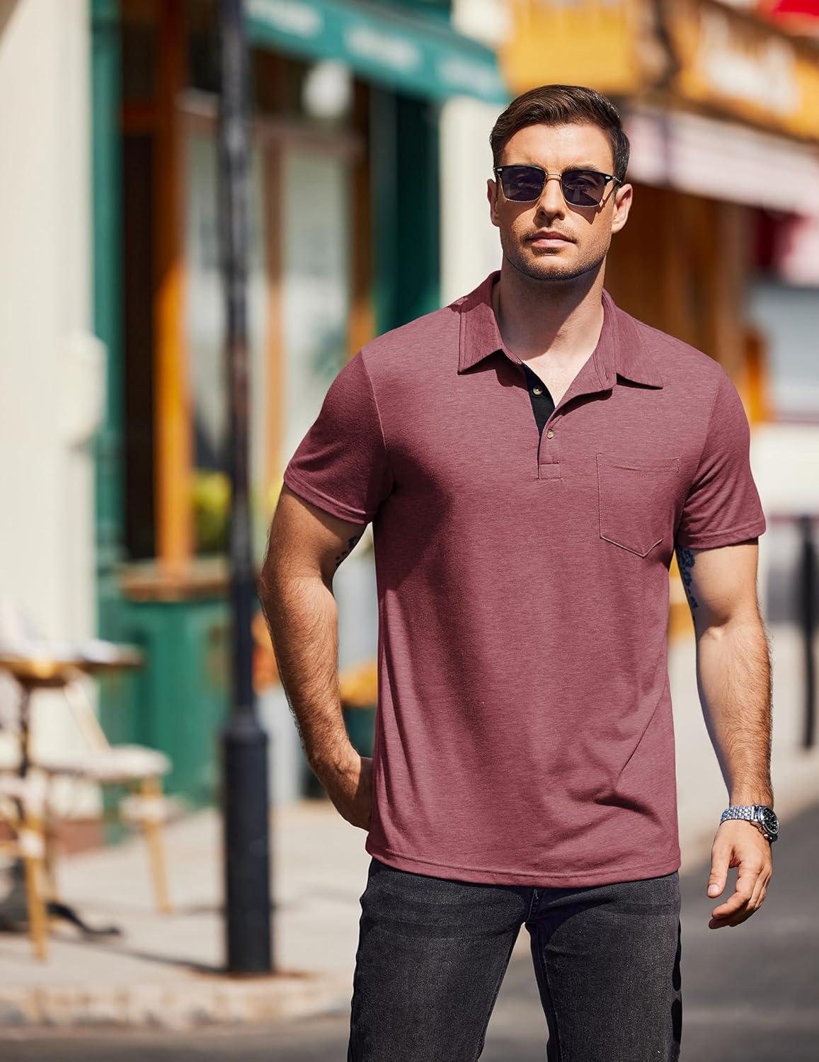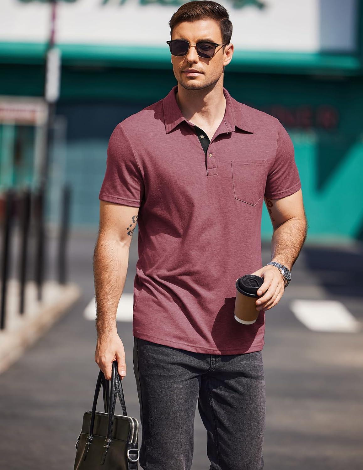 COOFANDY Men Short Sleeve Polo Shirt Casual Summer Collar Shirts Dress Button Polo T Shirt Classic Golf Shirts(Red)
