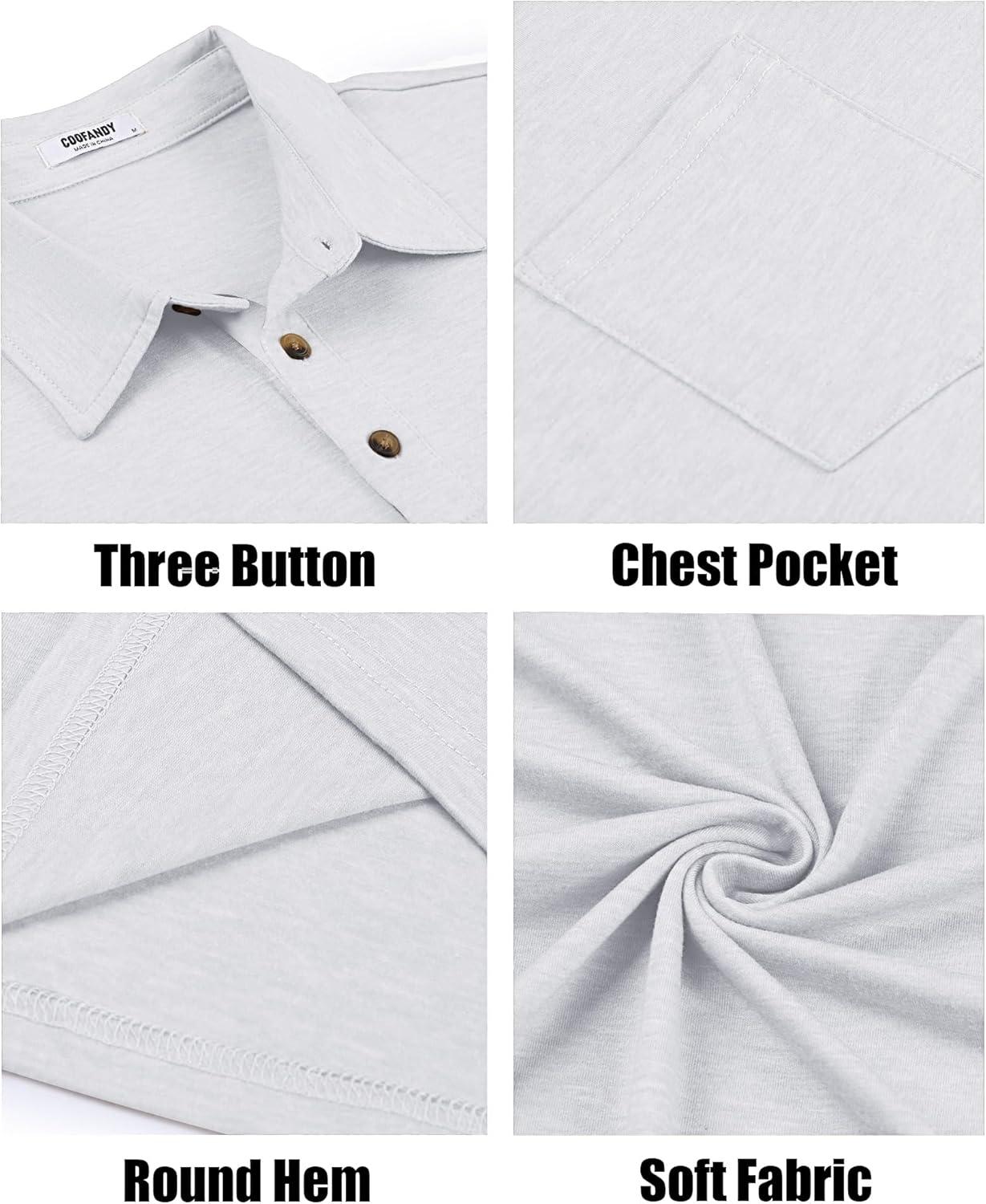 COOFANDY Men Short Sleeve Polo Shirt Casual Summer Collar Shirts Dress Button Polo T Shirt Classic Golf Shirts(Grey)