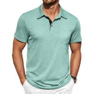 COOFANDY Men Short Sleeve Polo Shirt Casual Summer Collar Shirts Dress Button Polo T Shirt Classic Golf Shirts(Light Green)