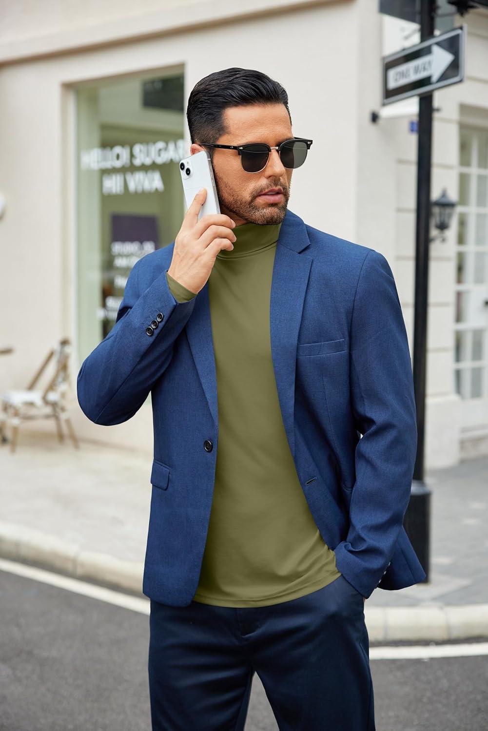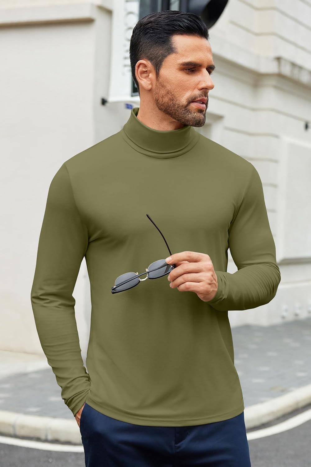 COOFANDY Mens Mock Turtleneck T-Shirts Long Sleeve Solid Color Tees Shirts Basic Casual Slim Fit Pullover T Shirts(1 Pack- Army Green)