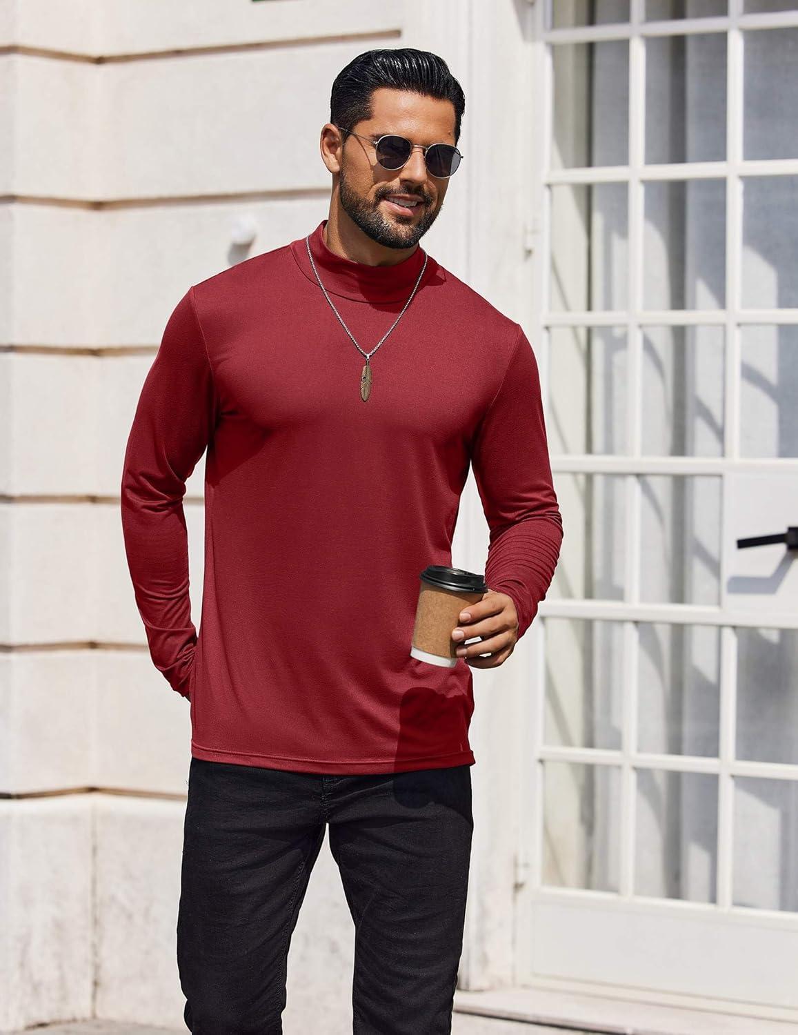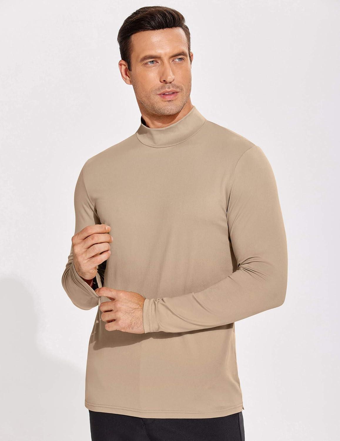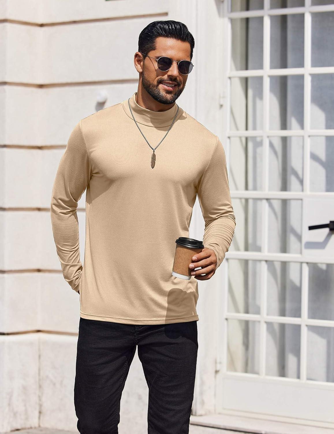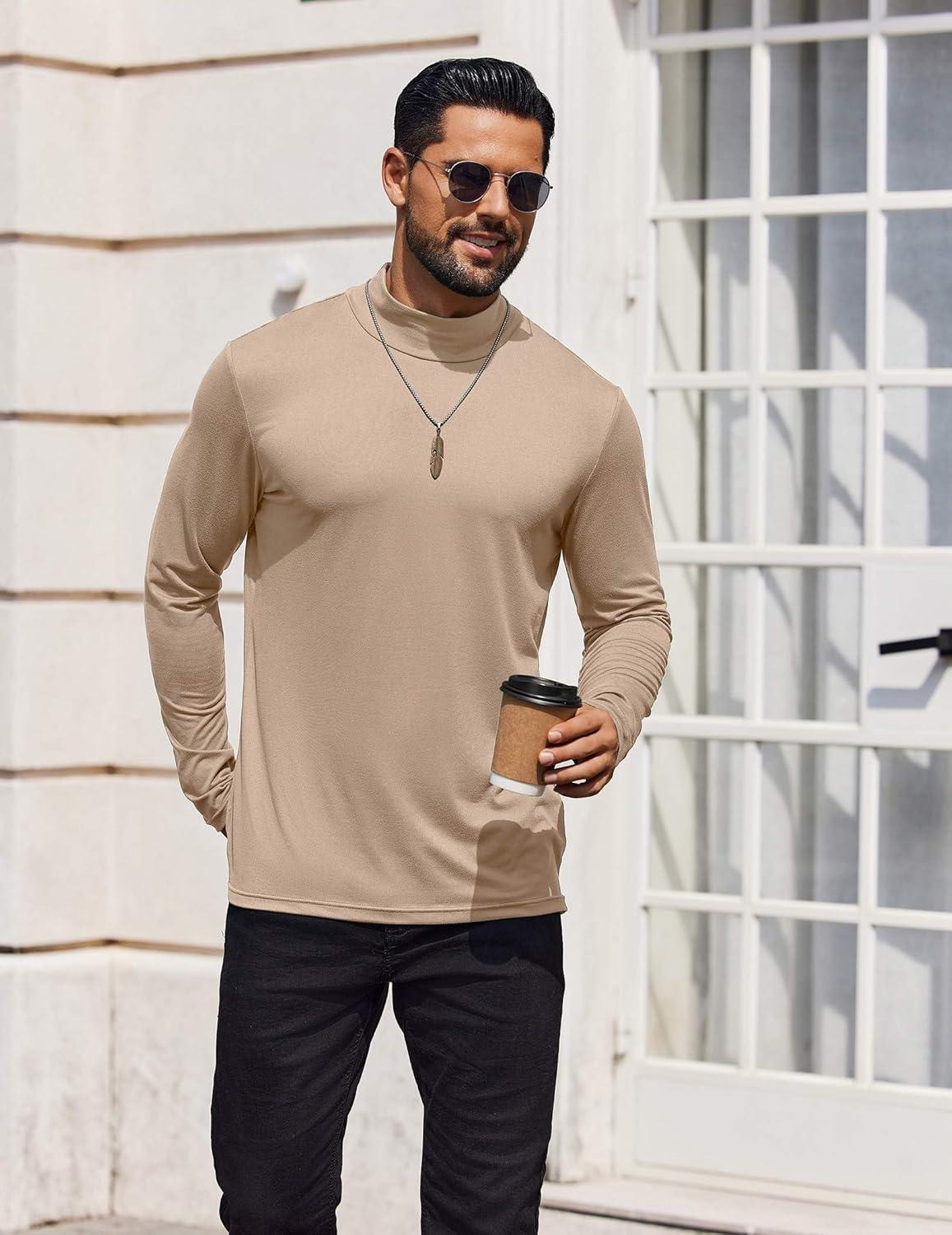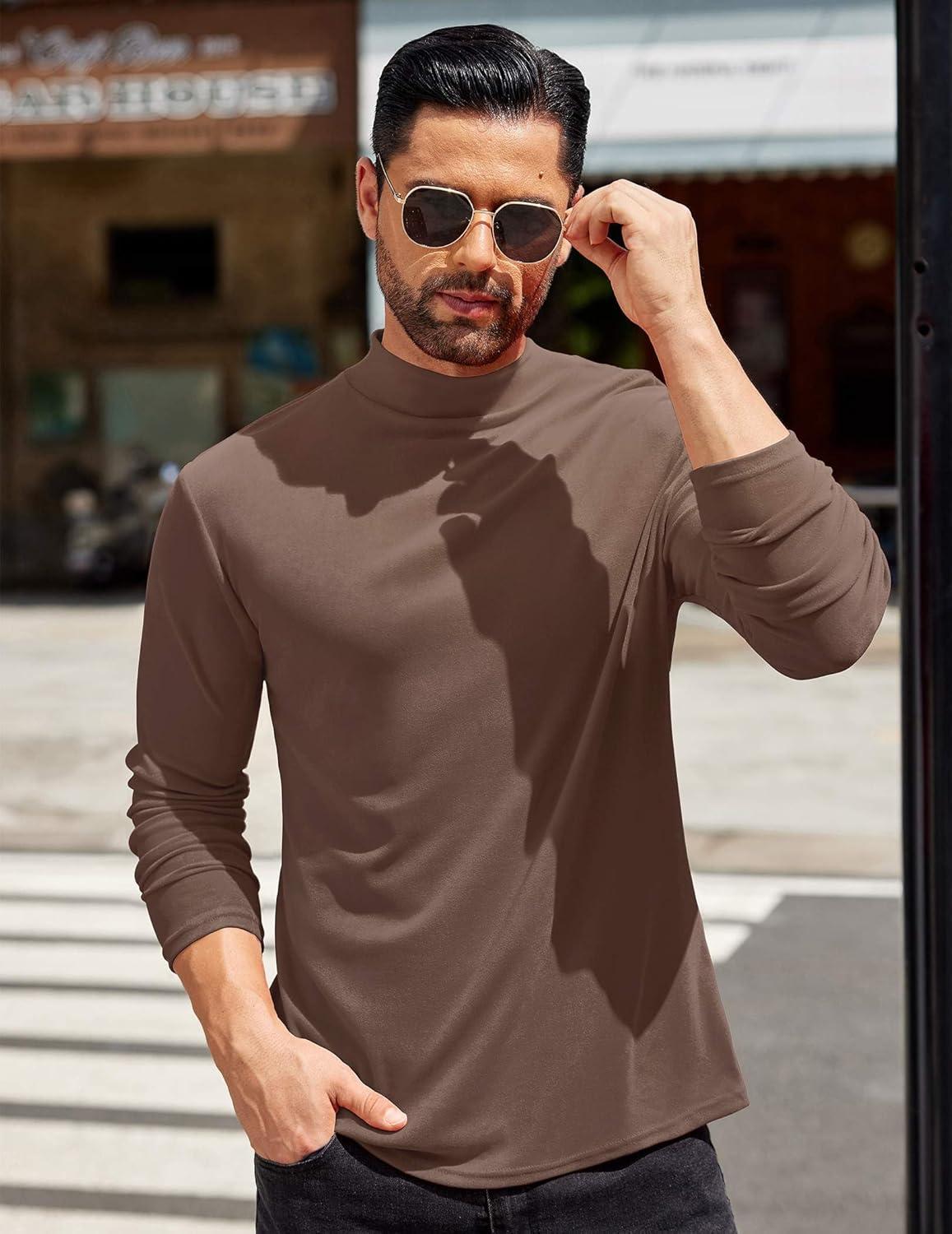 • COOFANDY Mens Mock Turtleneck T-Shirts Long Sleeve Solid Color Tees Shirts Basic Casual Slim Fit Pullover T Shirts(Brown)